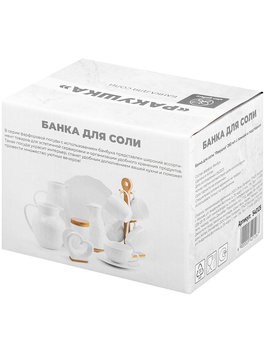Банка для хранения сыпучих продуктов, соли, специй 260 мл Elan Gallery Ракушка + дерев. ложка на дер. подставке интересное: