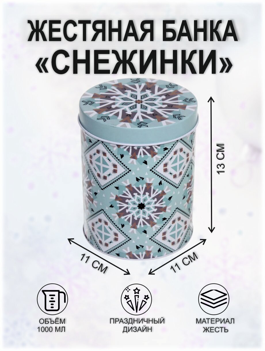Купить Жестяная банка для хранения сыпучих продуктов "Снежинки" 1000мл