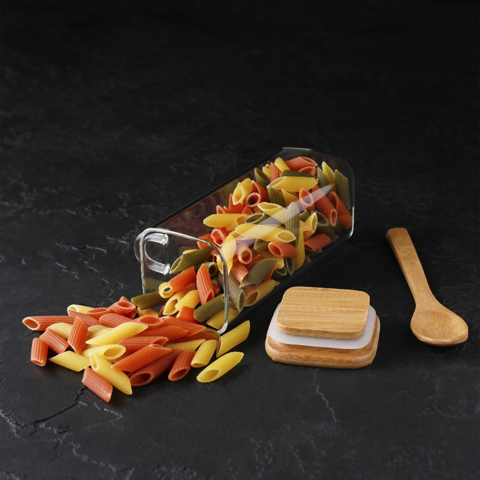 Банка стеклянная для сыпучих продуктов с бамбуковой крышкой и ложкой BellaTenero "Эко", 420 мл, 8,3х6,7х15,5 см