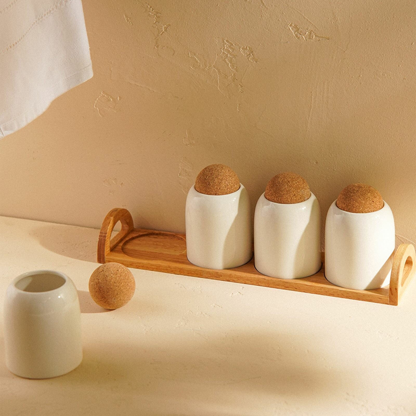 Банки для сыпучих продуктов SL Home Тренто , 150 мл, набор 3 шт, с ложками, на деревянной подставке, фарфор, белые