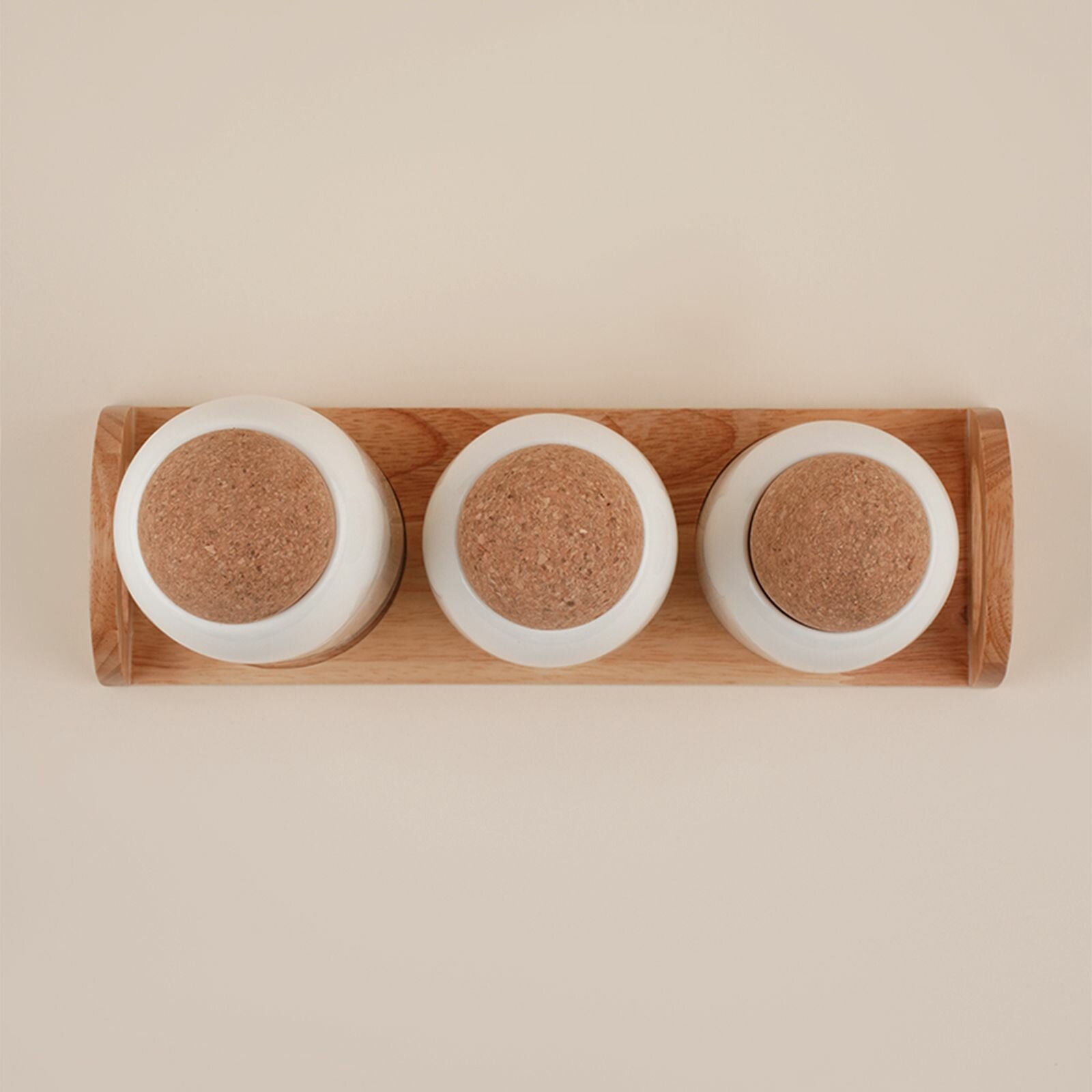 Банки для сыпучих продуктов SL Home Тренто , 150 мл, набор 3 шт, с ложками, на деревянной подставке, фарфор, белые