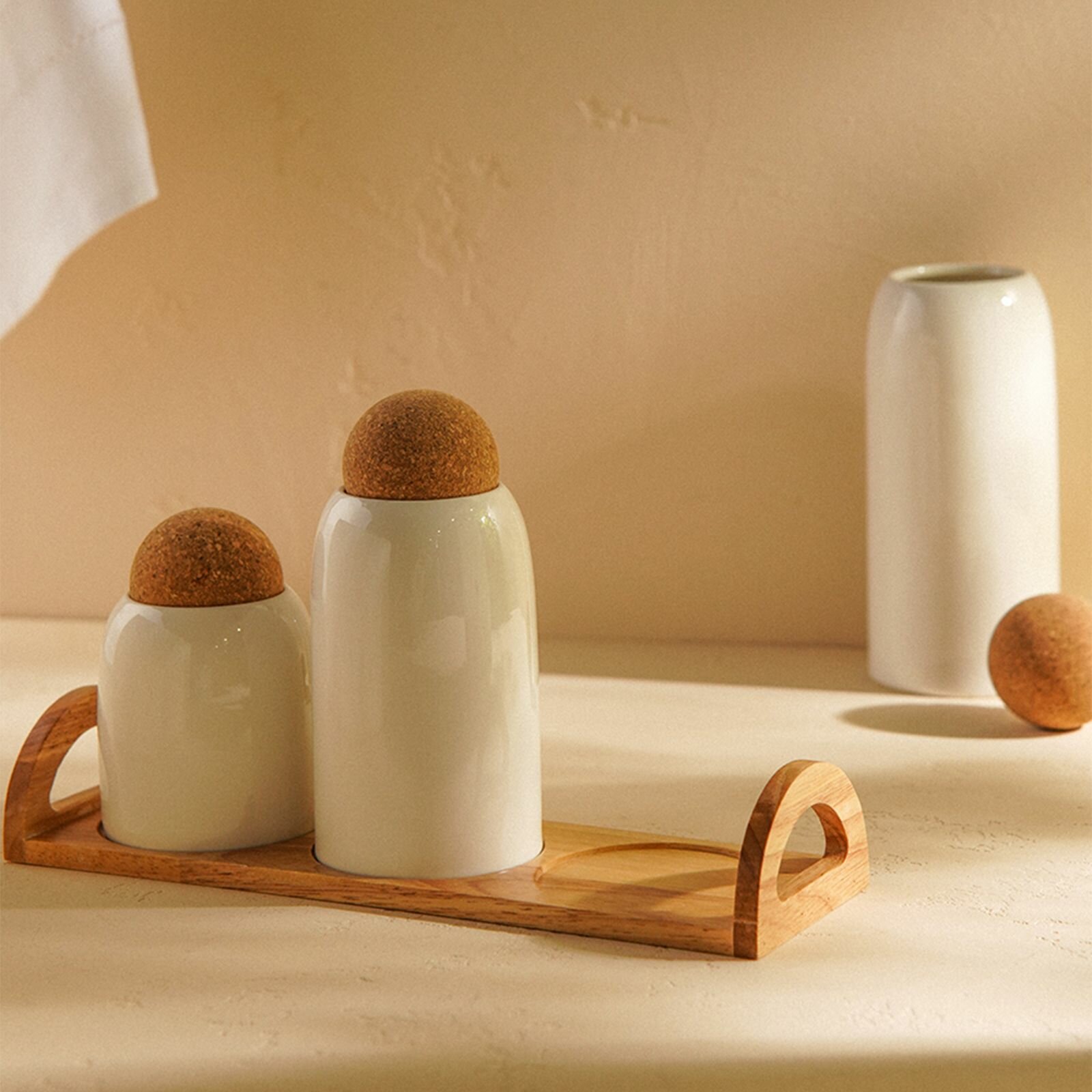 Банки для сыпучих продуктов SL Home Тренто , набор 4 шт, на деревянной подставке, фарфор, белые
