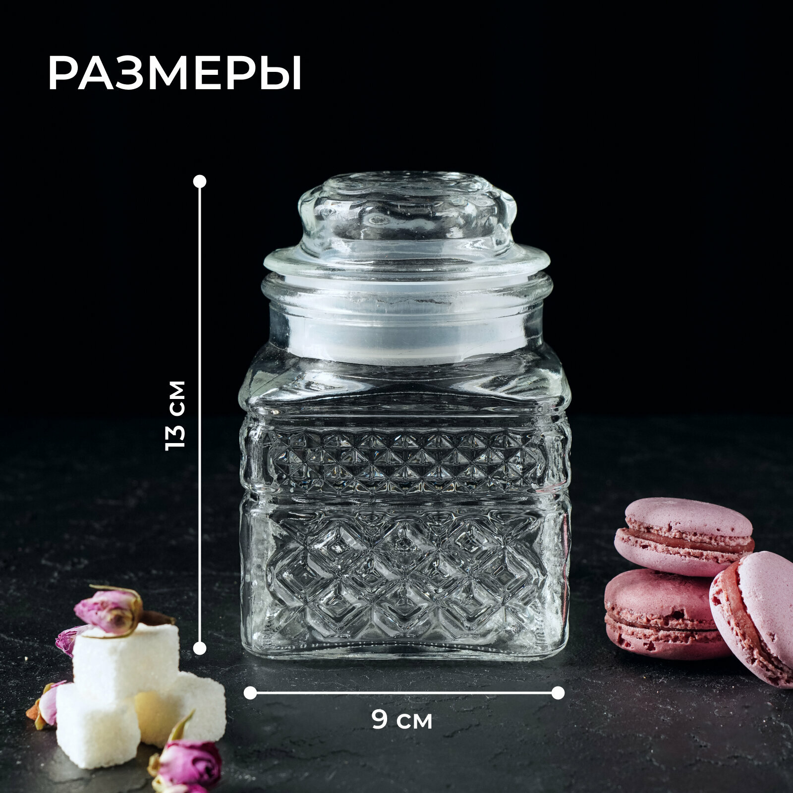 Банка стеклянная для хранения сыпучих продуктов с крышкой Доляна «Призма», 500 мл