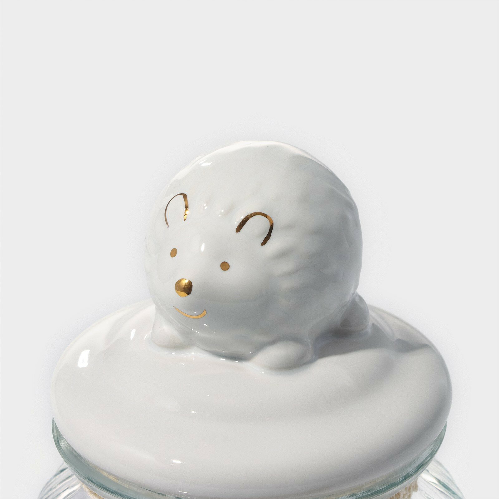 Банка стеклянная для хранения сыпучих продуктов Доляна «Ёжик в золотом», 600 мл, с керамической крышкой