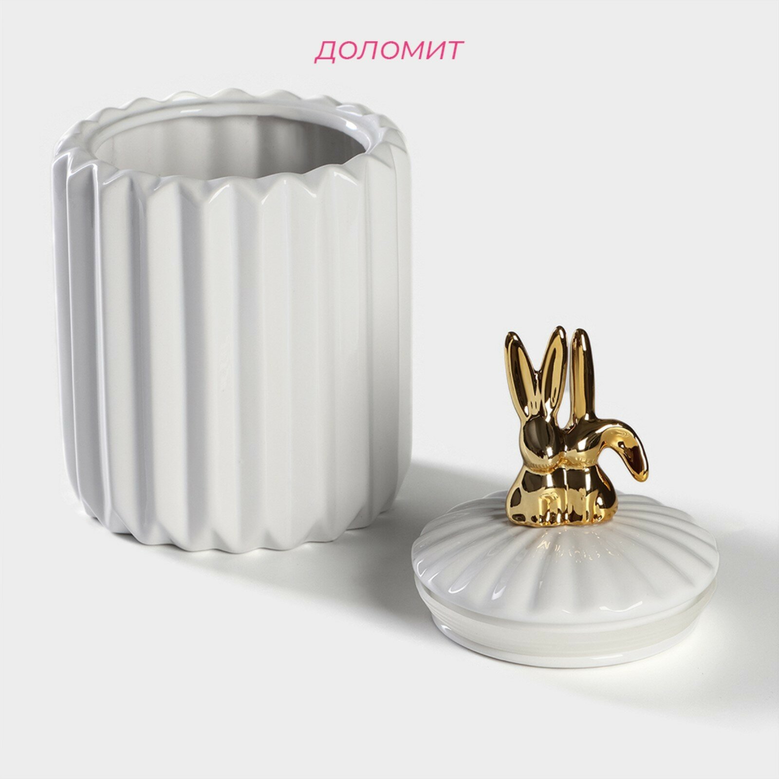 Банка для сыпучих Доляна «Золотой зайка», 900 мл, 12×18 см, керамика, белая