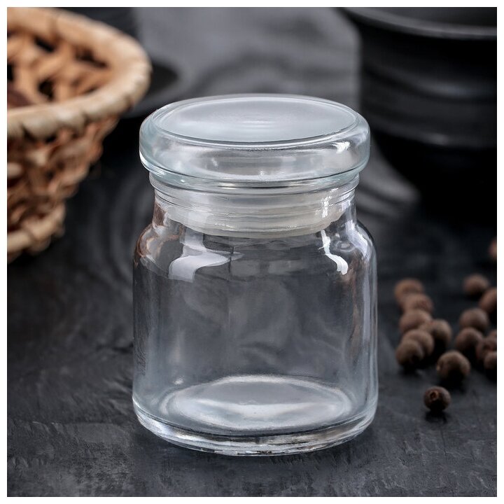 Банка для сыпучих "Идиллия", 50 мл, 4.2x5.2 см, с металлической крышкой, стекло, прозрачная