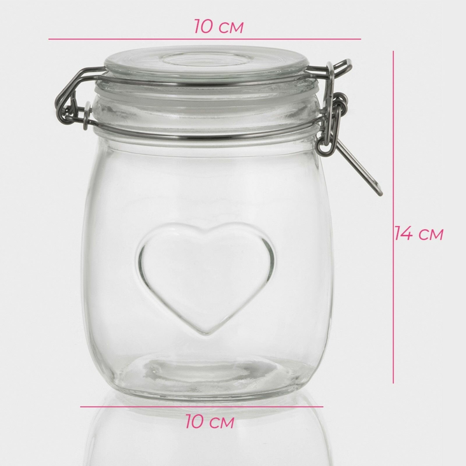 Купить Банка для сыпучих продуктов Доляна "Сердце", объем 850 мл, с бугельным замком, размер 10,5х14 см