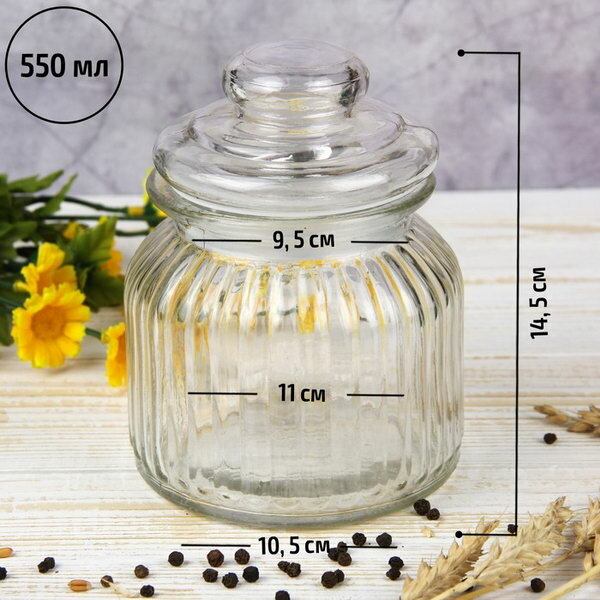 Банка для сыпучих Доляна "Премиум", 550 мл, 15*8 см