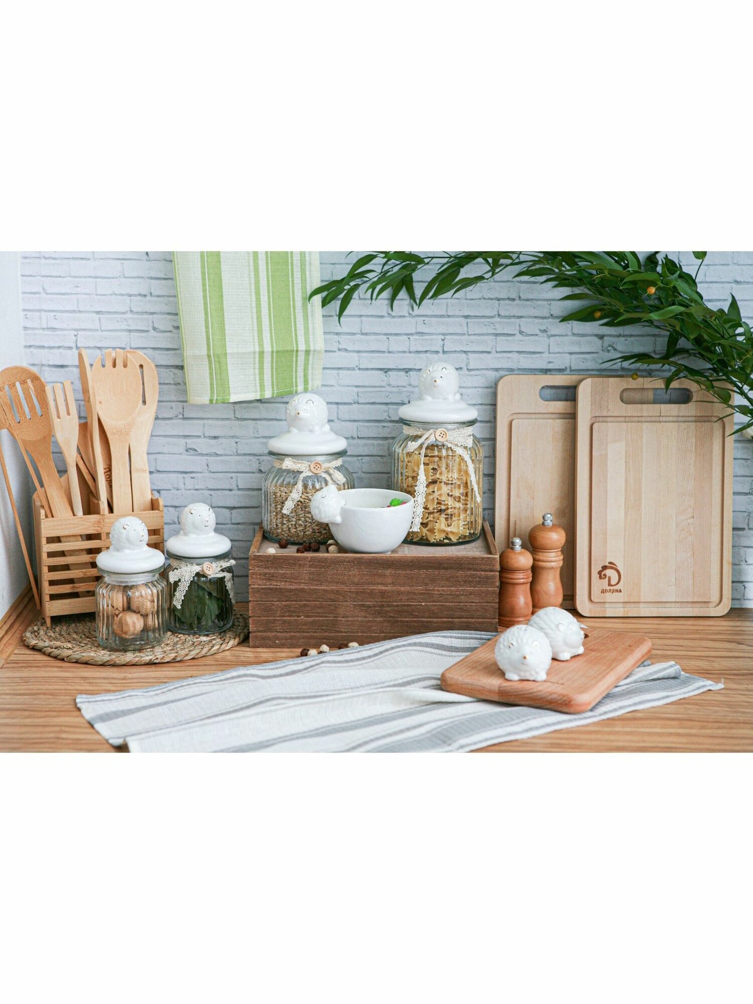 Банка стеклянная с крышкой для сыпучих продуктов SKYPHOS «Птичка», 300 мл, цвет белый
