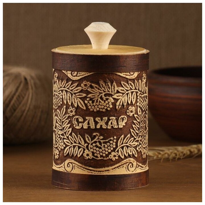 Купить Туес "Гроздья рябины" Д8см, сахар, береста