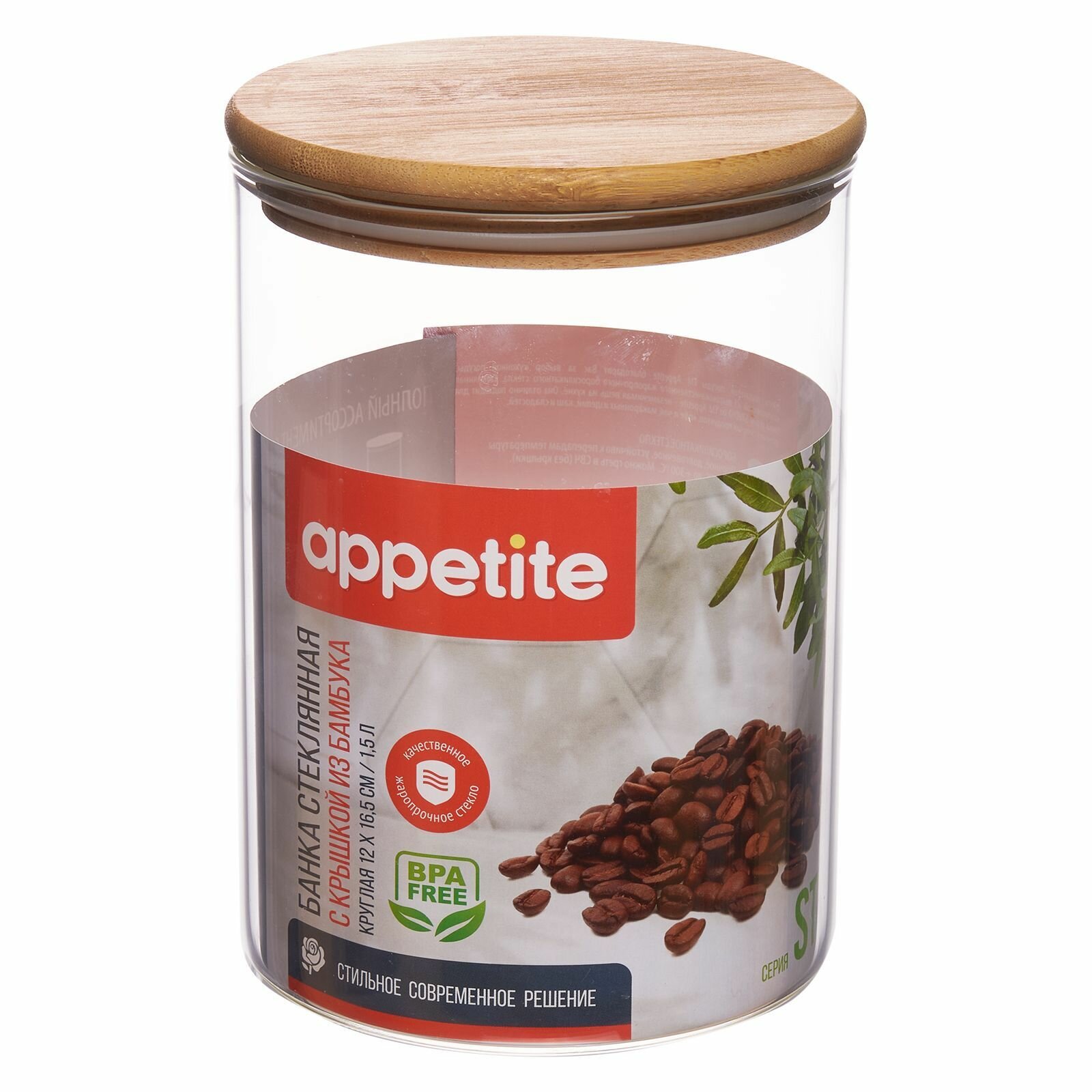 Банка стеклянная круглая 1500мл с бамбуковой крышкой Studio TM Appetite интересное: