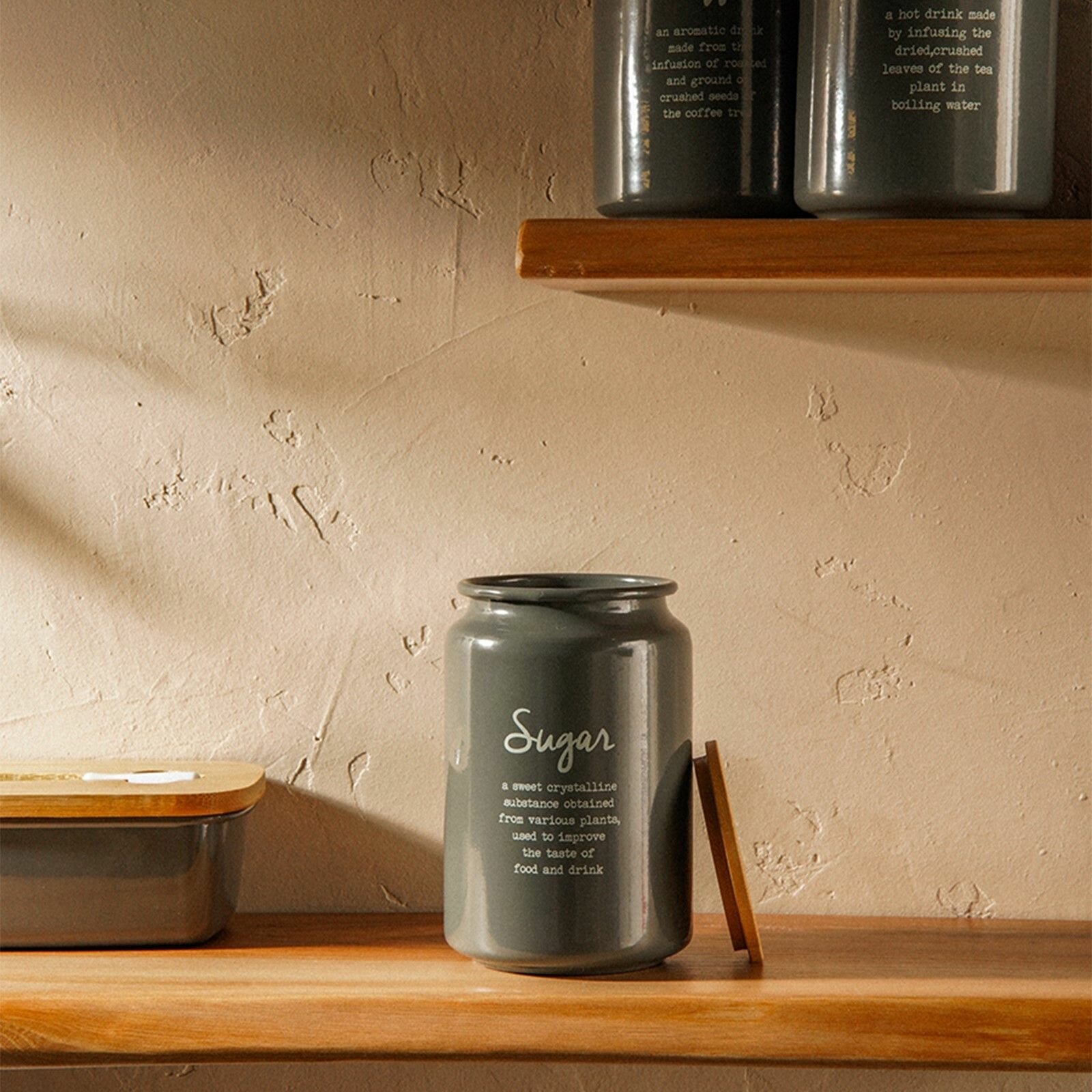Купить Банка для сахара SL Home, 9,5 14 см, цвет серый, с бамбуковой крышкой