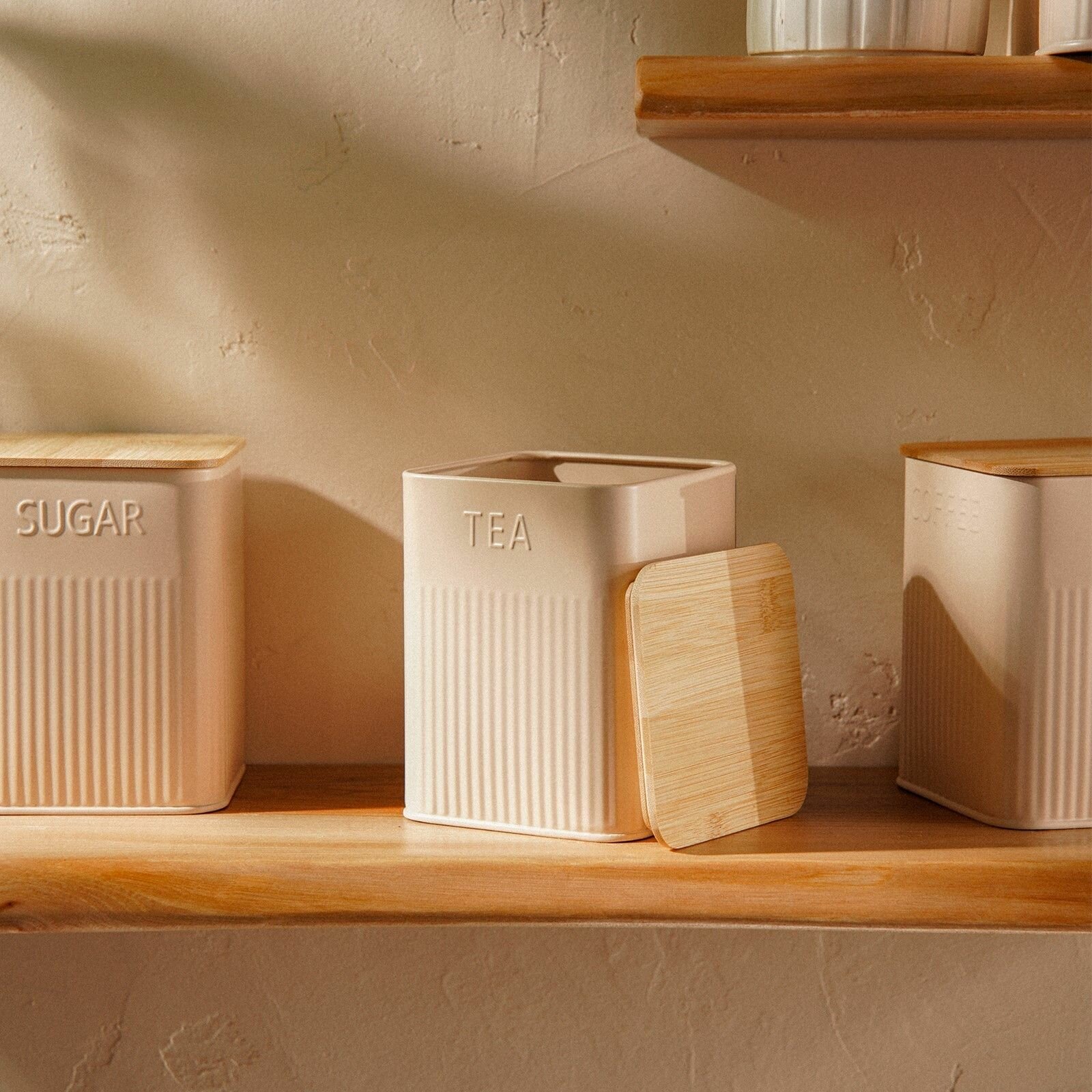 Банка для сахара SL Home, 9,5 14 см, цвет серый, с бамбуковой крышкой