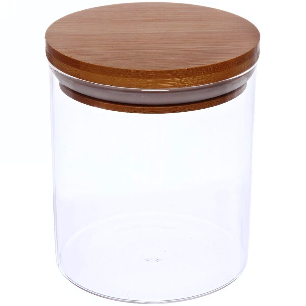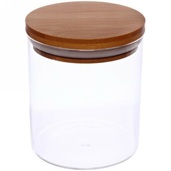 Банка для сыпучих продуктов, стеклянная с бамбуковой крышкой 560 мл