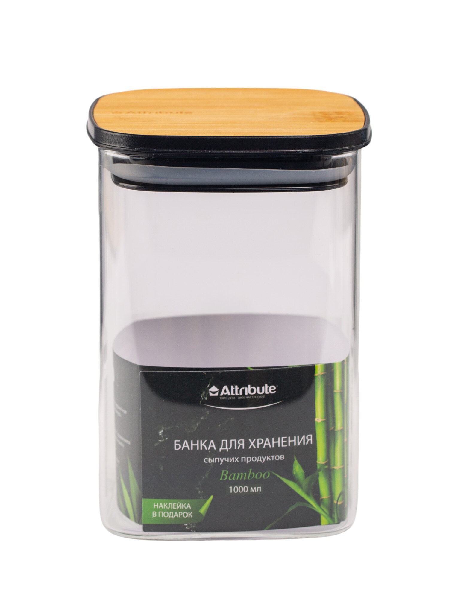 Банка для хранения сыпучих продуктов квадратная BAMBOO 1000мл