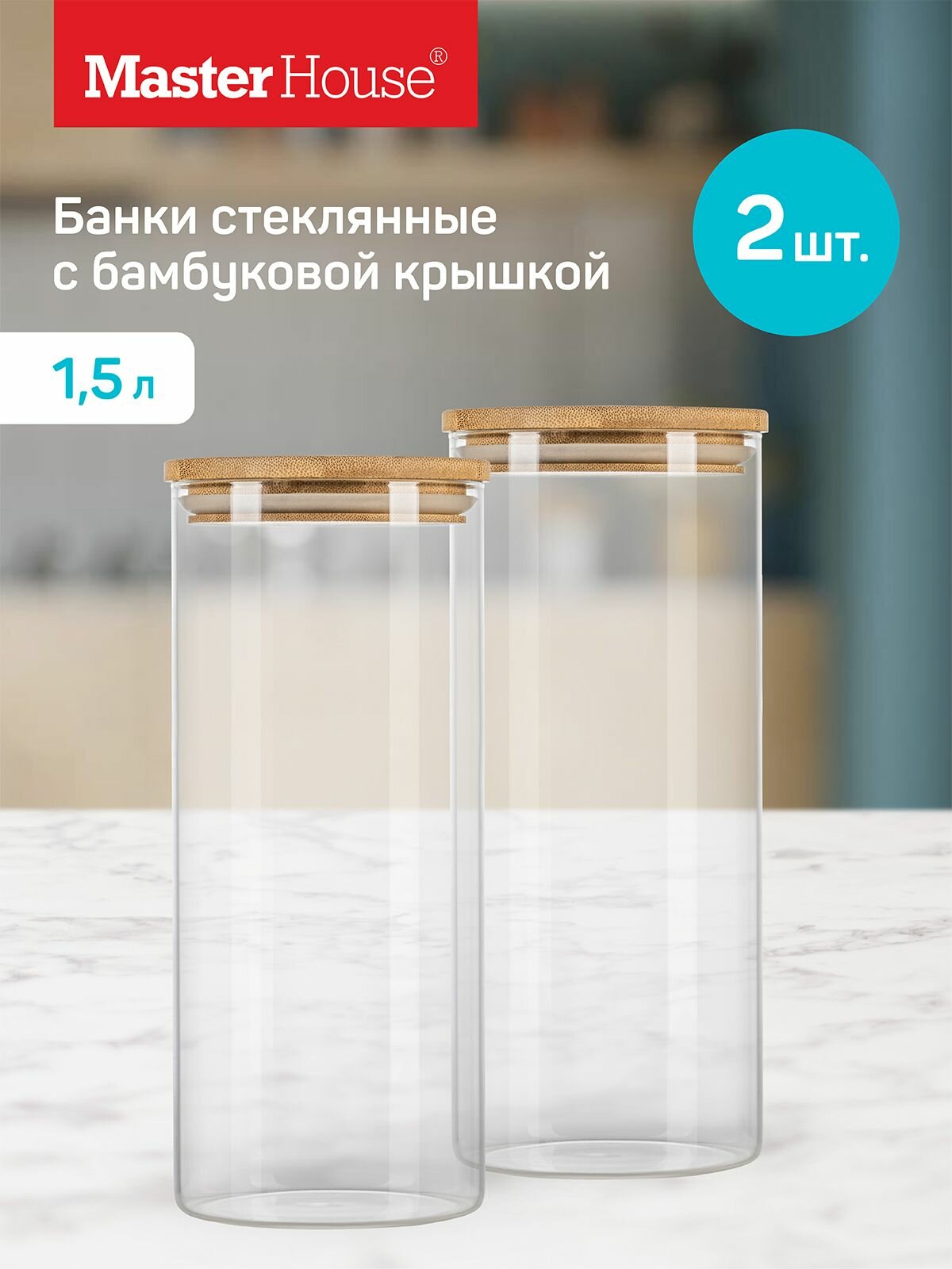 Купить Master House Набор банок стеклянных с бамбуковой крышкой Тауэр 1,5 литра 2 штуки