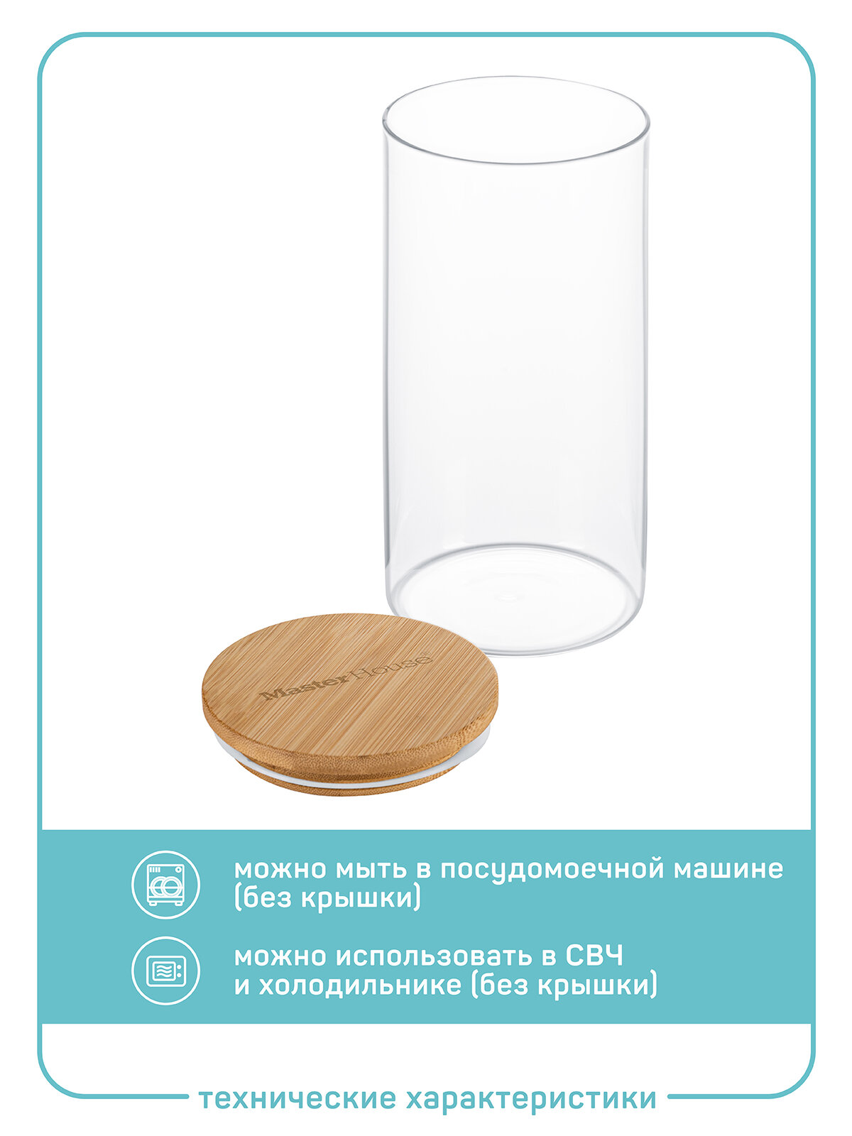 Master House Набор банок стеклянных с бамбуковой крышкой Тауэр 1,5 литра 2 штуки интересное:
