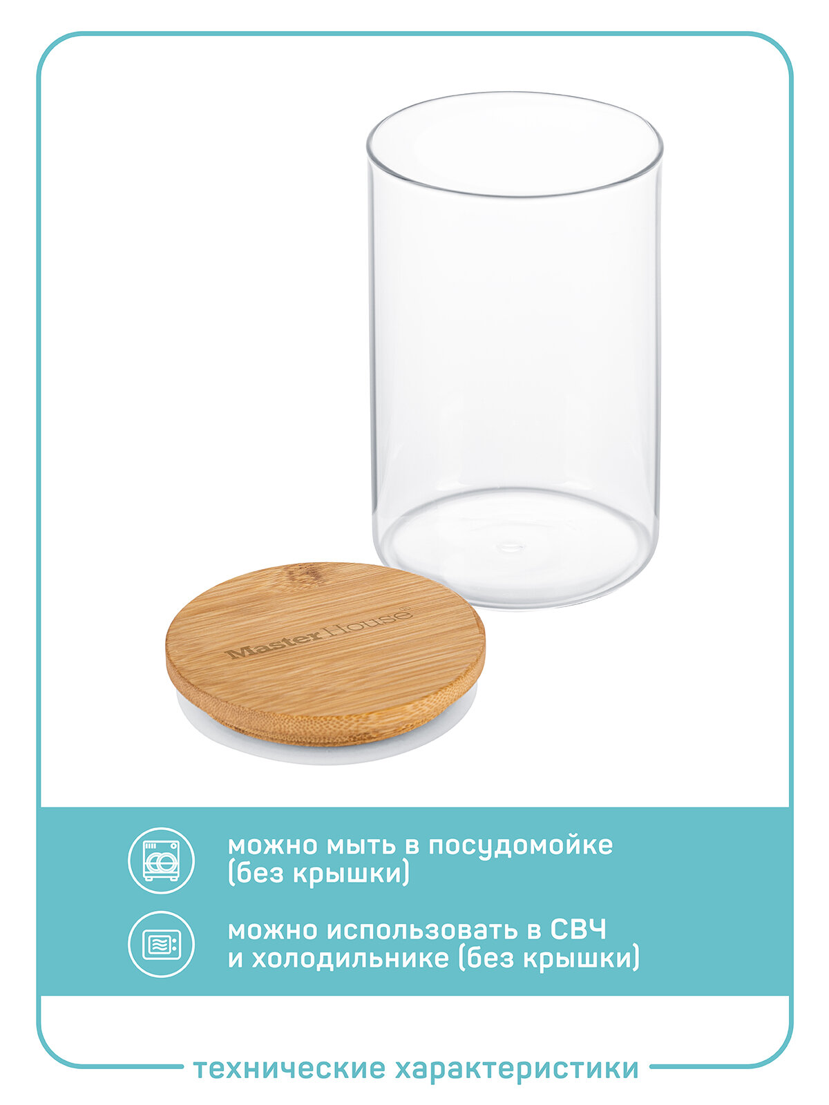 Купить Master House Набор банок стеклянных с бамбуковой крышкой Тауэр 1 литр 2 штуки