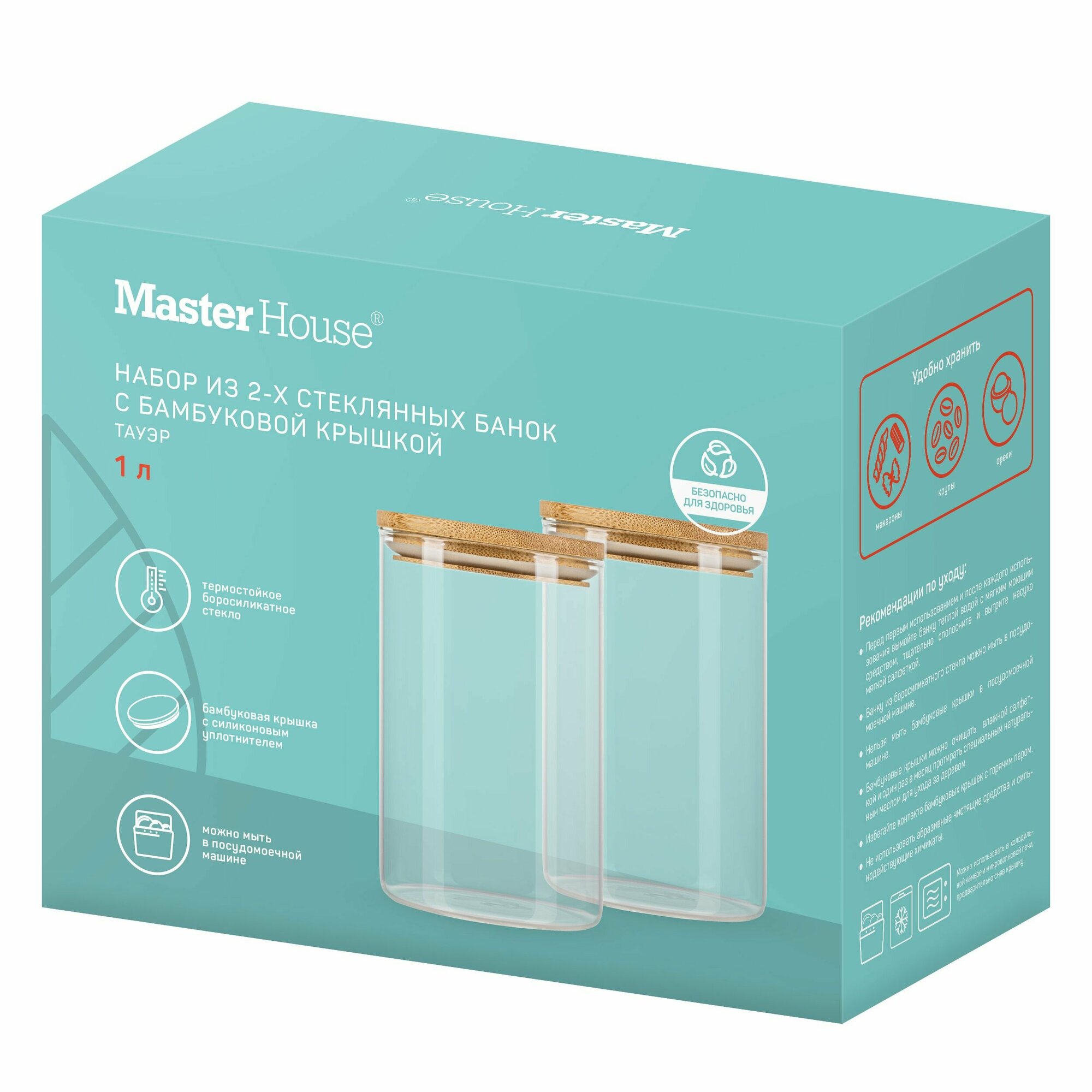 Master House Набор банок стеклянных с бамбуковой крышкой Тауэр 1 литр 2 штуки интересное: