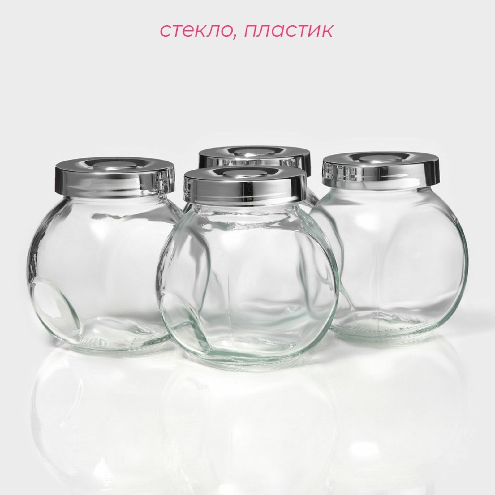 Купить Набор банок для сыпучиx продуктов Блеск, 200 мл, 4 шт