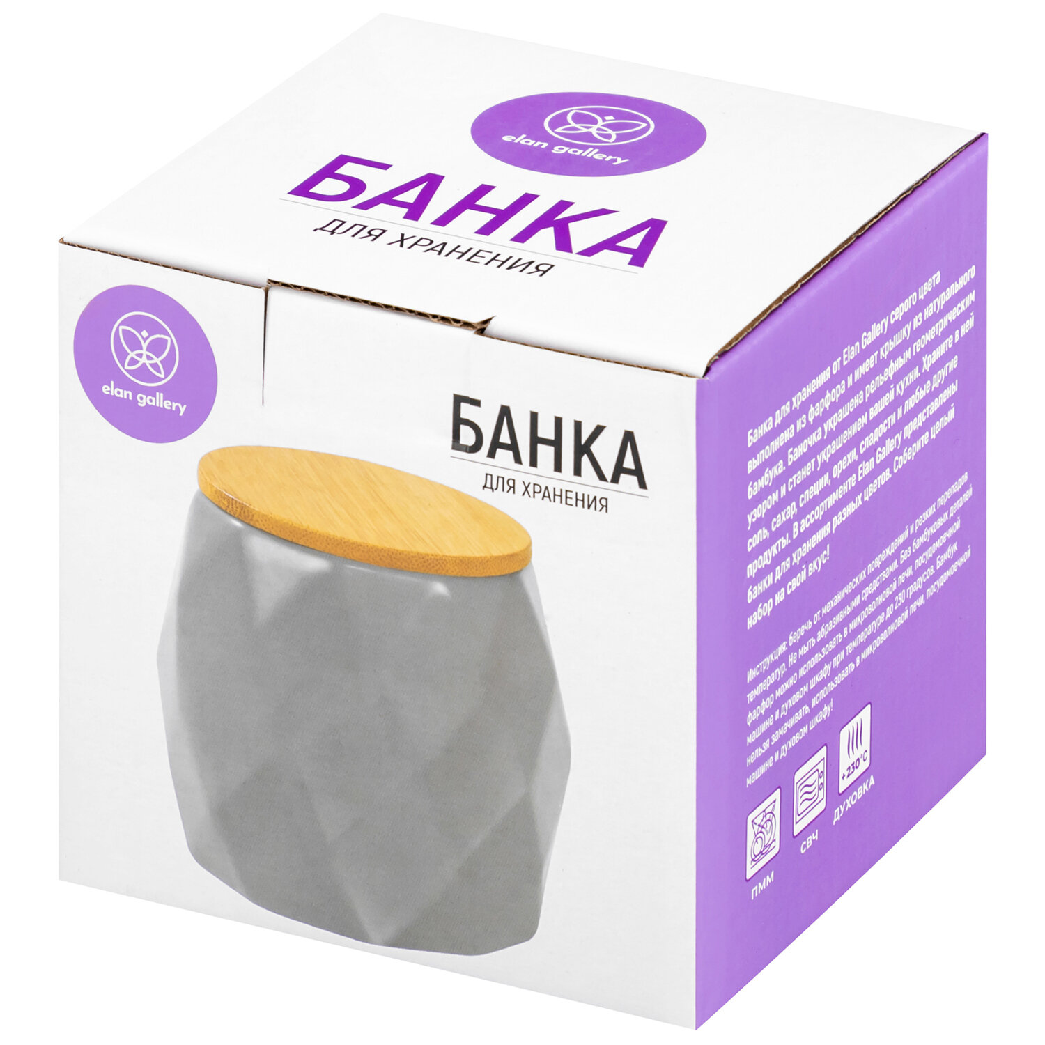 Банка для хранения сыпучих продуктов 550 мл Elan Gallery Серая + бамбуковая крышка с силиконовым уплотнителем интересное: