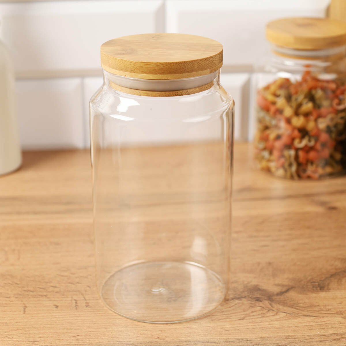 Купить Банка-органайзер для хранения сыпучих продуктов 1100 мл стекло, с бамбуковой крышкой