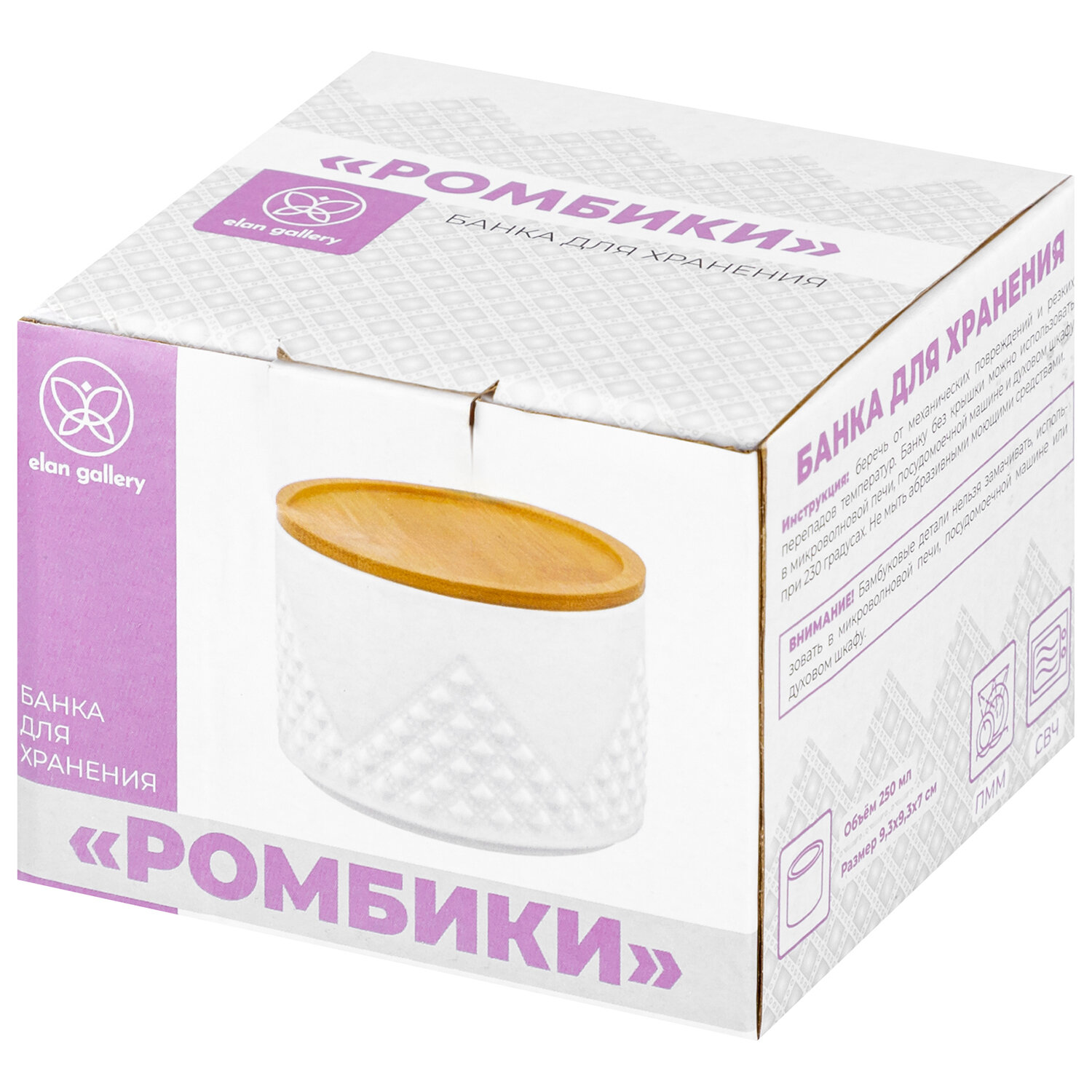 Банка для хранения сыпучих продуктов и запекания 250 мл Elan Gallery Ромбики + дер. крышка с сил. упл. интересное: