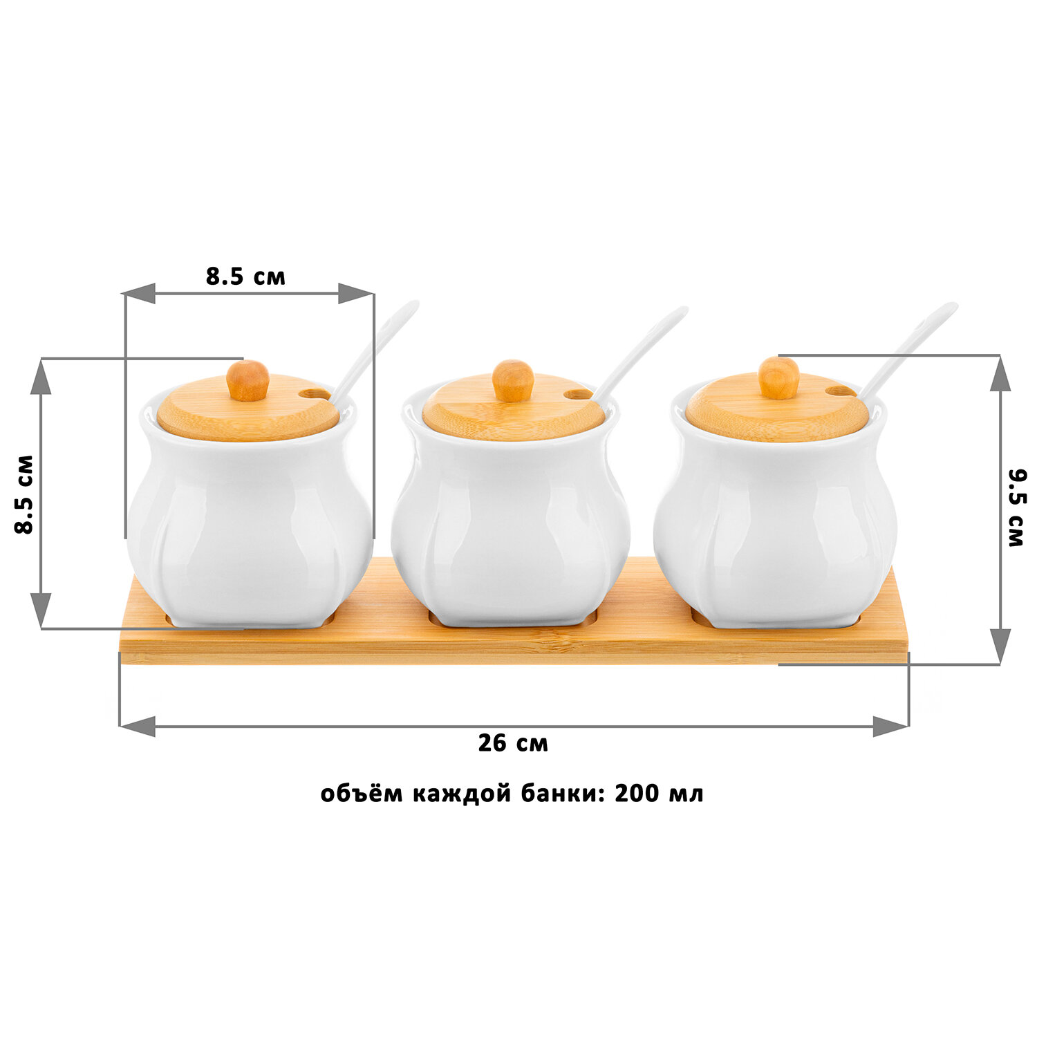 Банка для хранения сыпучих продуктов, соли, специй 3шт по 200мл Elan Gallery Тюльпан + ложки + крышки, на подст, набор интересное:
