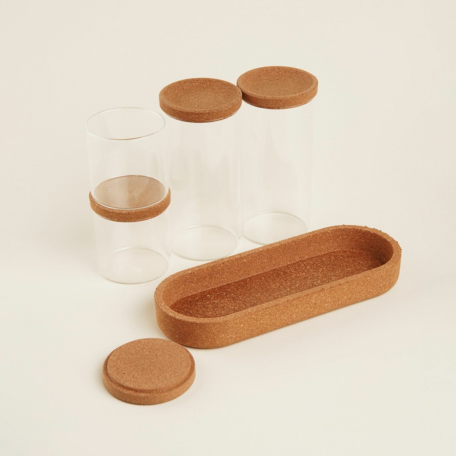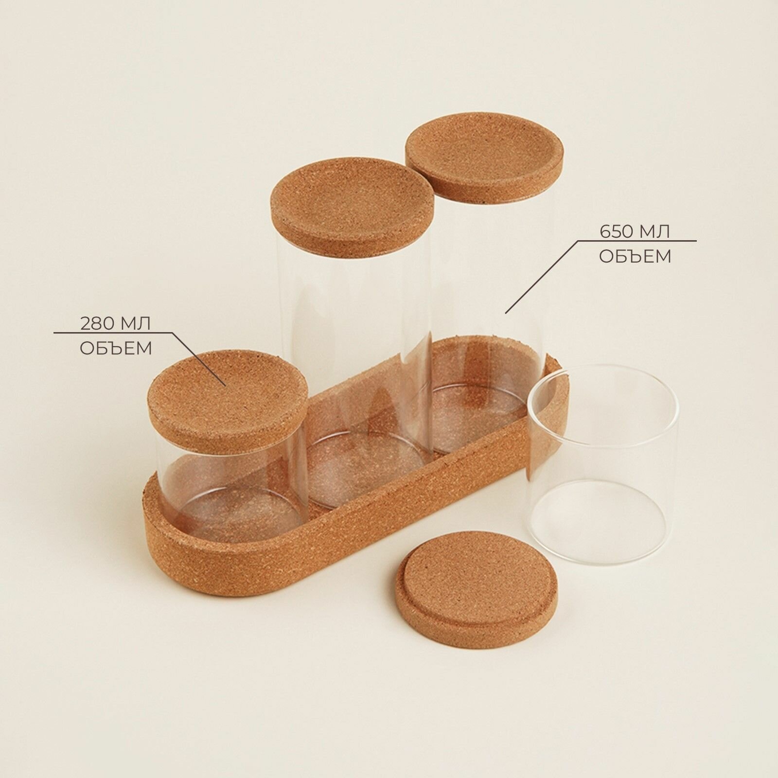 Купить Набор банок стеклянный для хранения сыпучих продуктов SL Home Алькорноке , 5 предметов: 4 банки 280/650 мл, с пробковой крышкой, на подставке