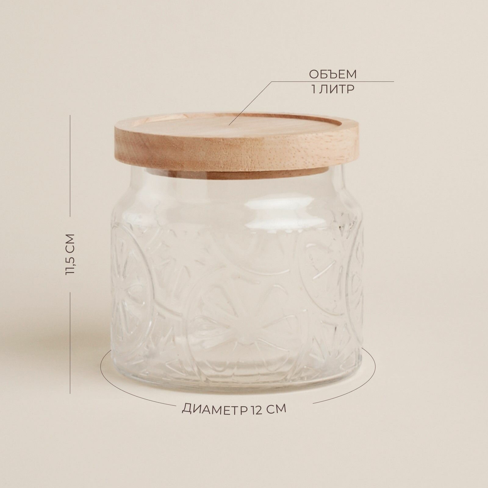 Банка стеклянная для хранения сыпучих продуктов SL Home Ивелин , 1 л, 12 12 см, с деревянной крышкой