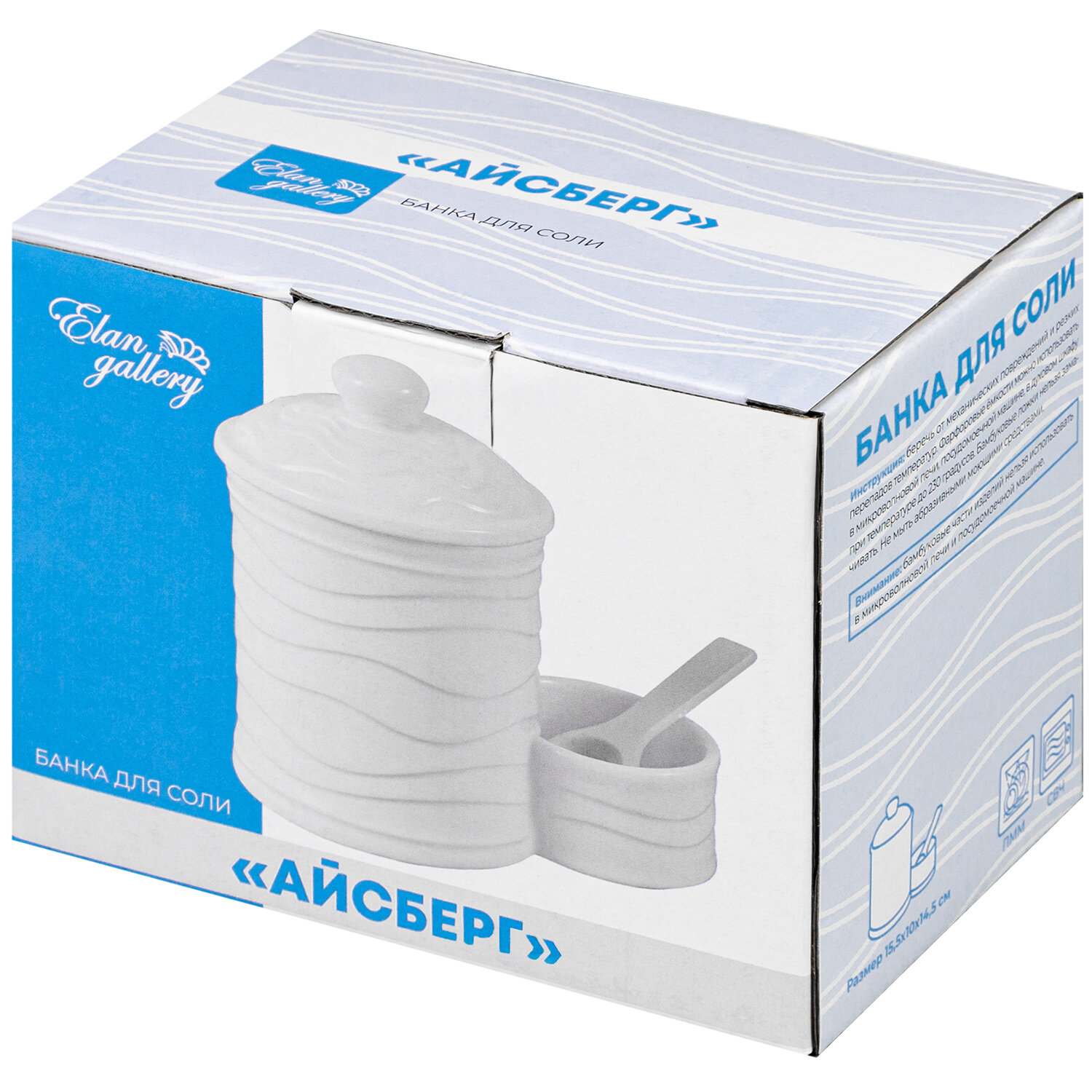Банка д/соли 15,5*10*14,5 см 500 мл "Айсберг волны" + деревянная ложка + крышка интересное: