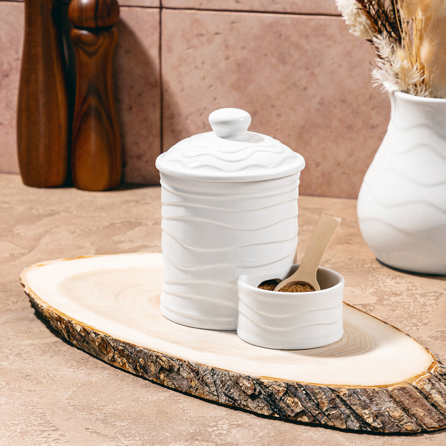 Купить Банка д/соли 15,5*10*14,5 см 500 мл "Айсберг волны" + деревянная ложка + крышка