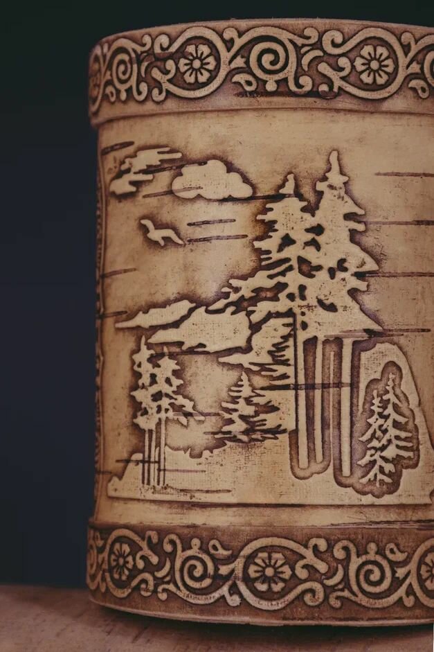 Банка для продуктов универсальная. Туес из бересты, тиснение "Соль, ручная работа. ТМ "русская береста" интересное: