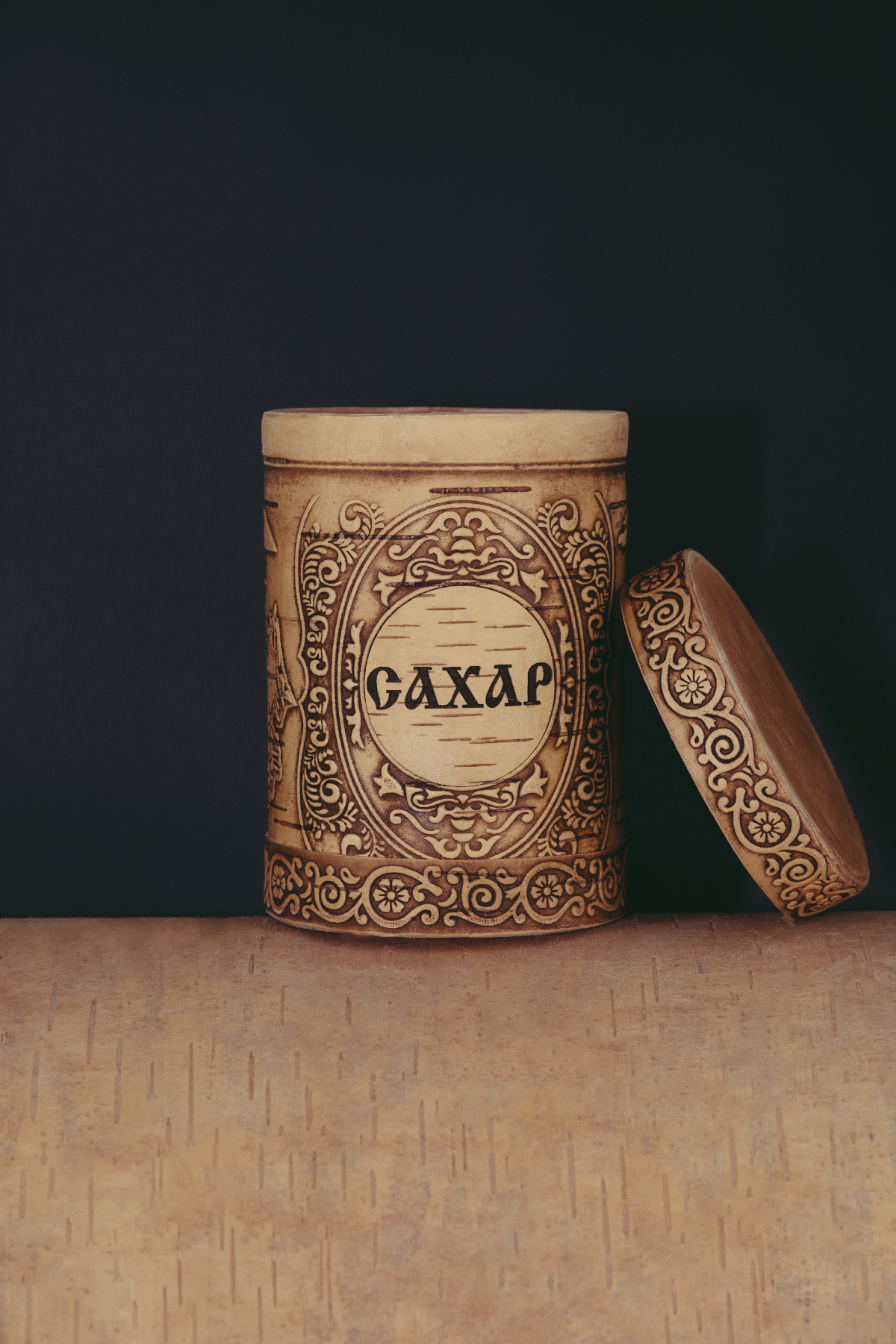Банка для продуктов универсальная. Туес из бересты, тиснение "Сахар", ручная работа. ТМ "русская береста" интересное: