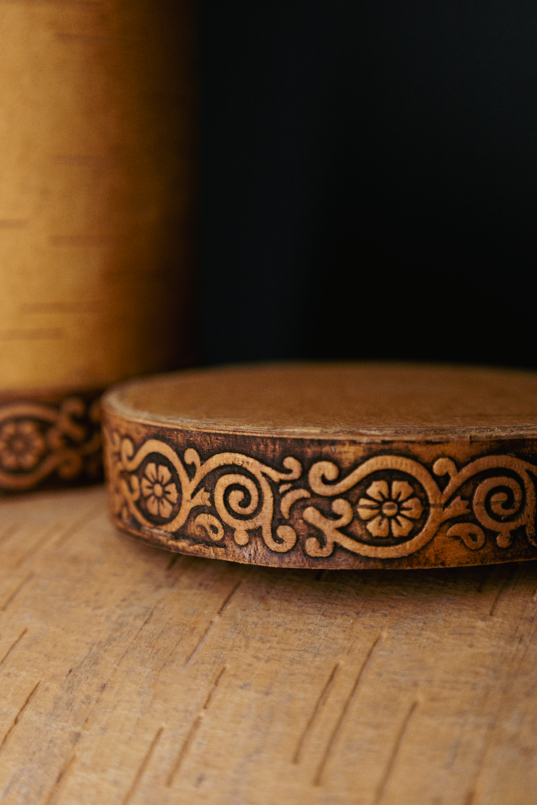 Банка для продуктов универсальная. Туес из бересты, тиснение "Чай", ручная работа. ТМ "русская береста"