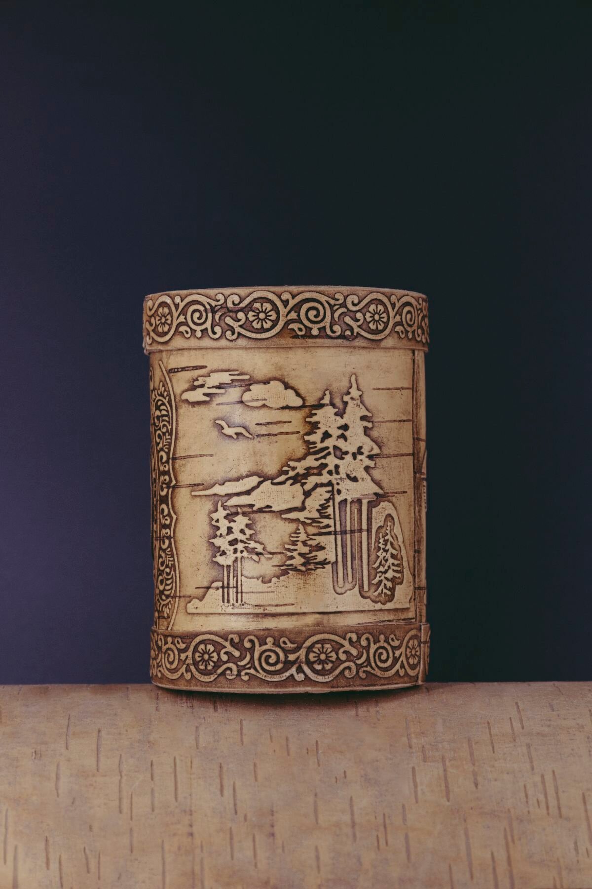 Купить Банка для продуктов универсальная. Туес из бересты, тиснение "Чай", ручная работа. ТМ "русская береста"