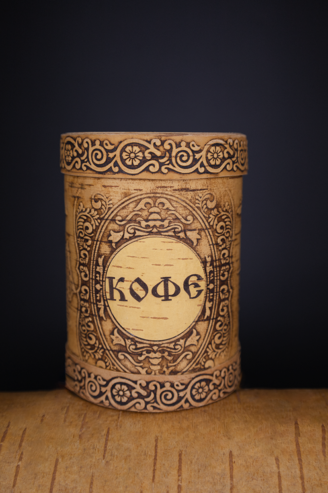 Банка для продуктов универсальная. Туес из бересты, тиснение "Кофе", ручная работа. ТМ "русская береста" интересное: