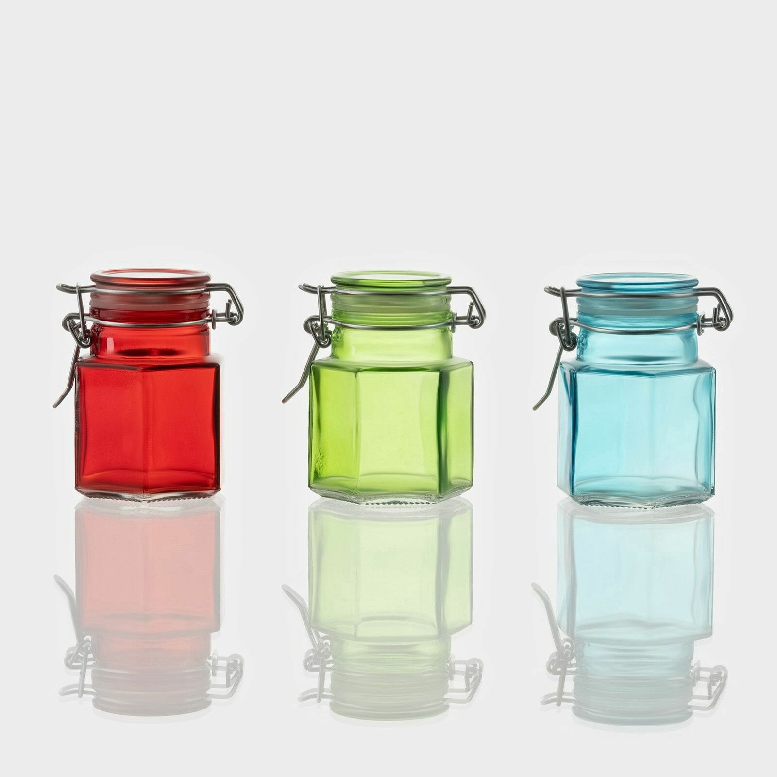 Банка стеклянная для сыпучих продуктов с бугельным замком "Радуга", 900 мл, 12х11х15 см