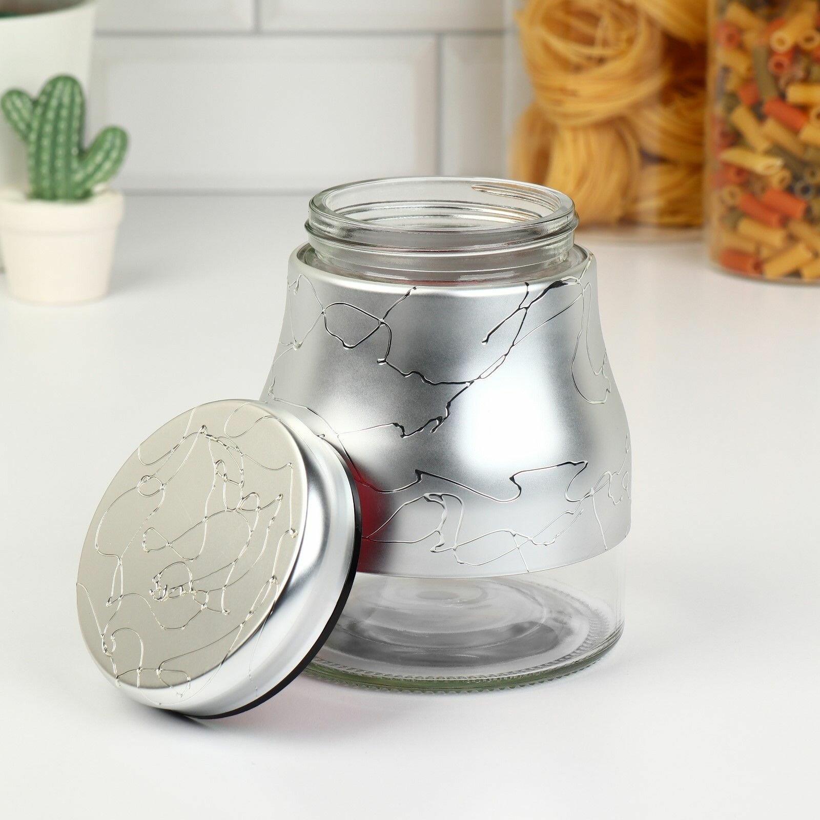 СохранитьНабор банок стеклянных для сыпучих продуктов "Мрамор", 850 мл, 11,5х14,5 см, 3 шт, цвет серебряный интересное: