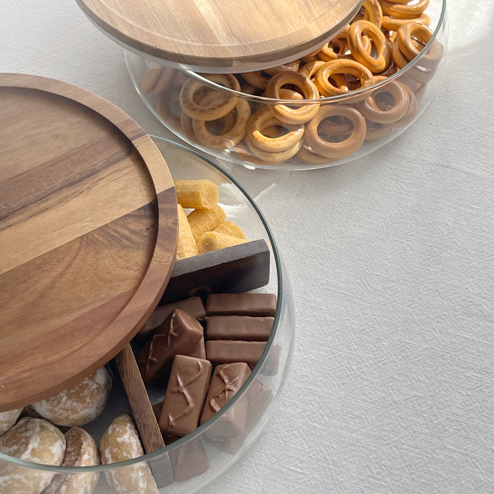 Стеклянная банка для печенья, конфет, орехов с деревянной тарелкой и разделителем