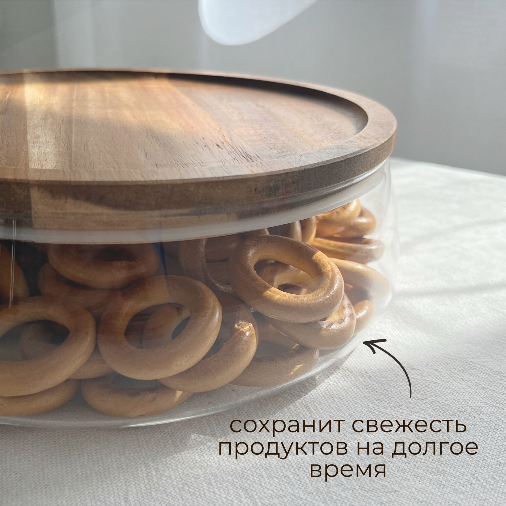 Купить Банка стеклянная для хранения печенья конфет орехов фруктов с крышкой - тарелкой из натурального дерева