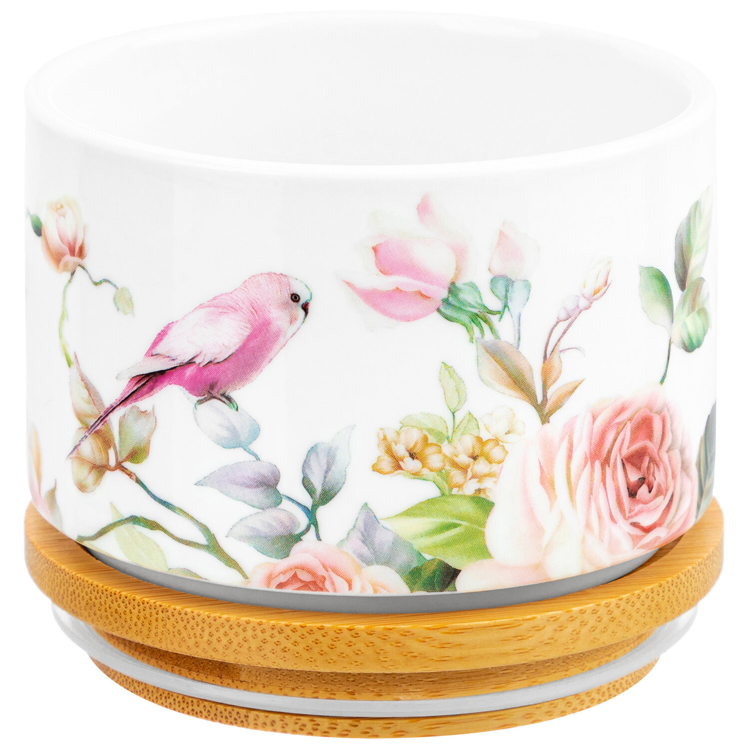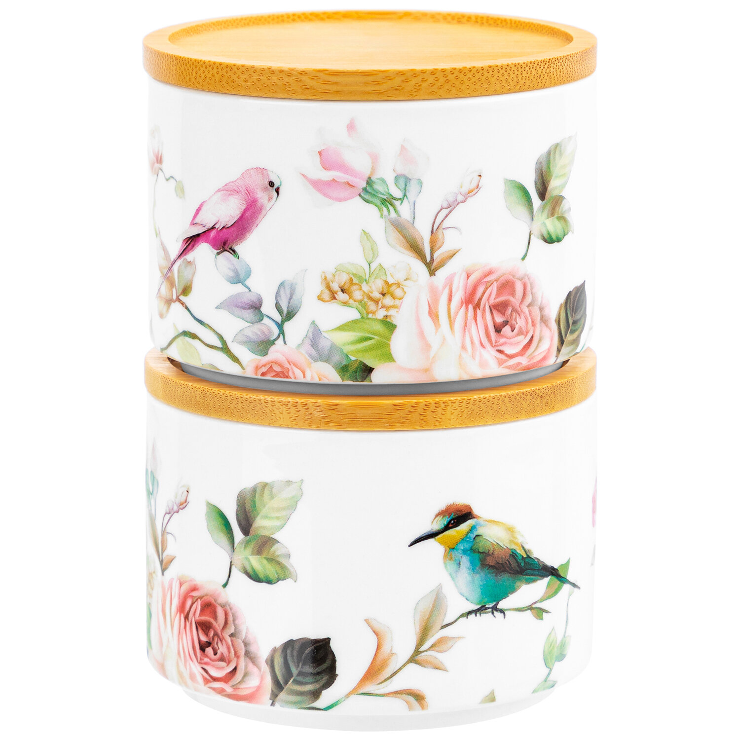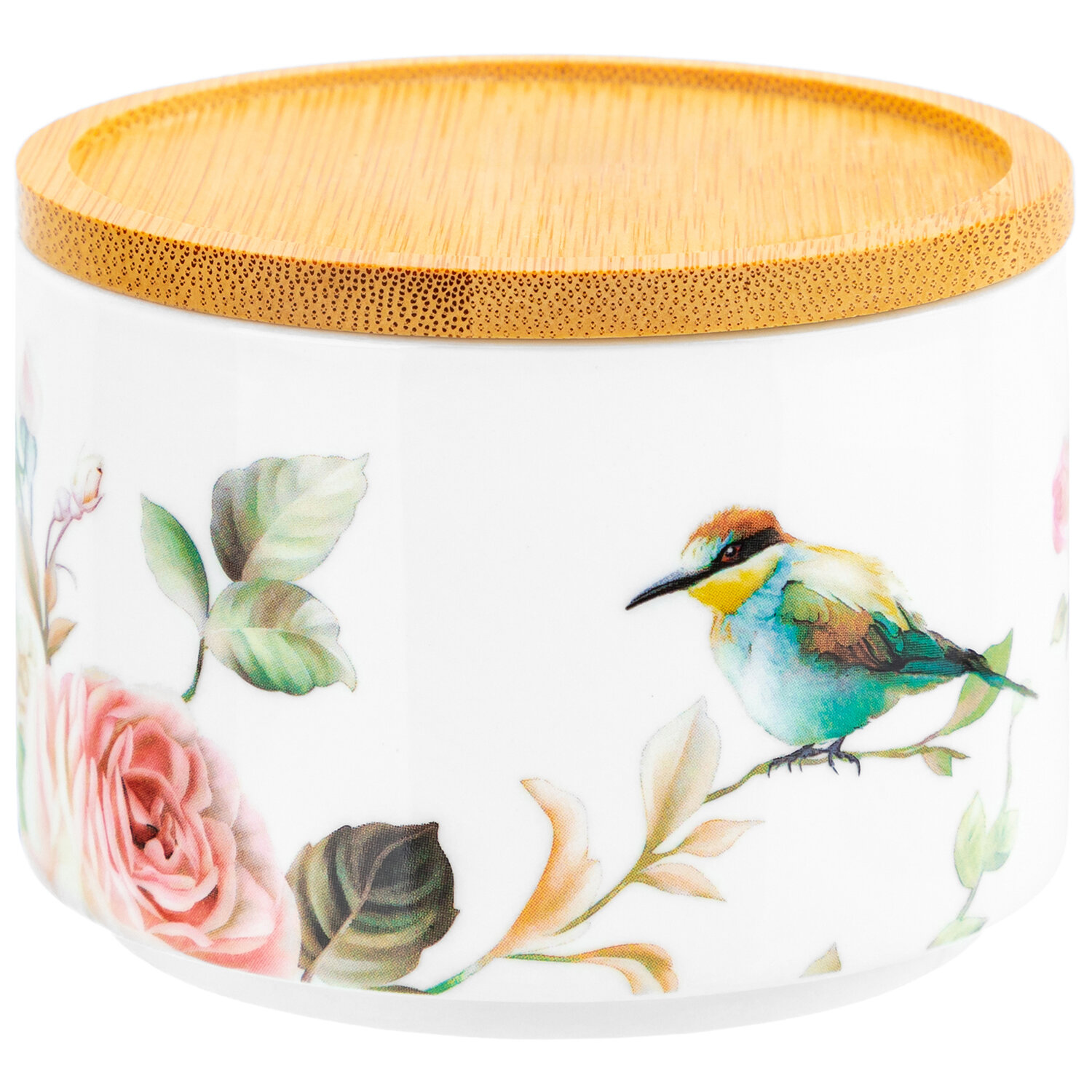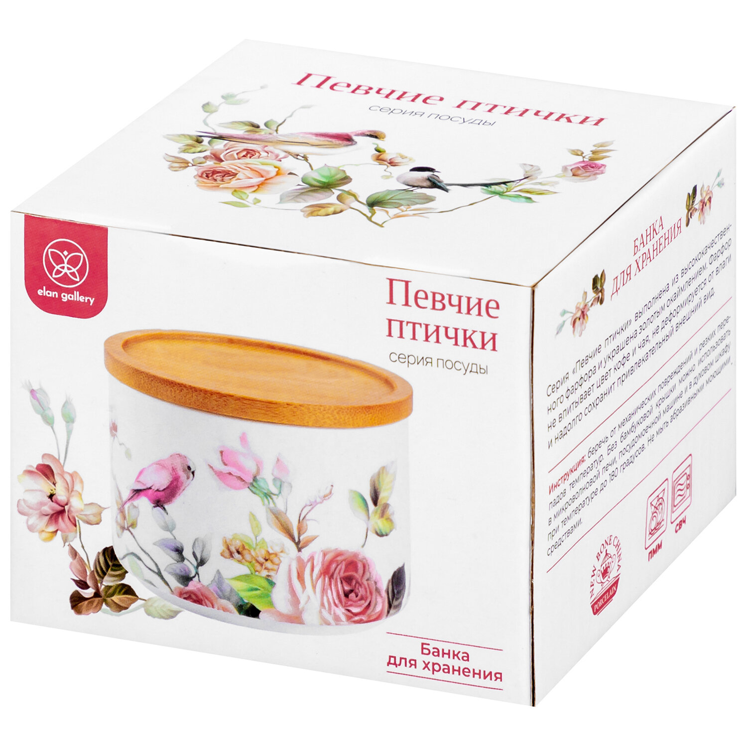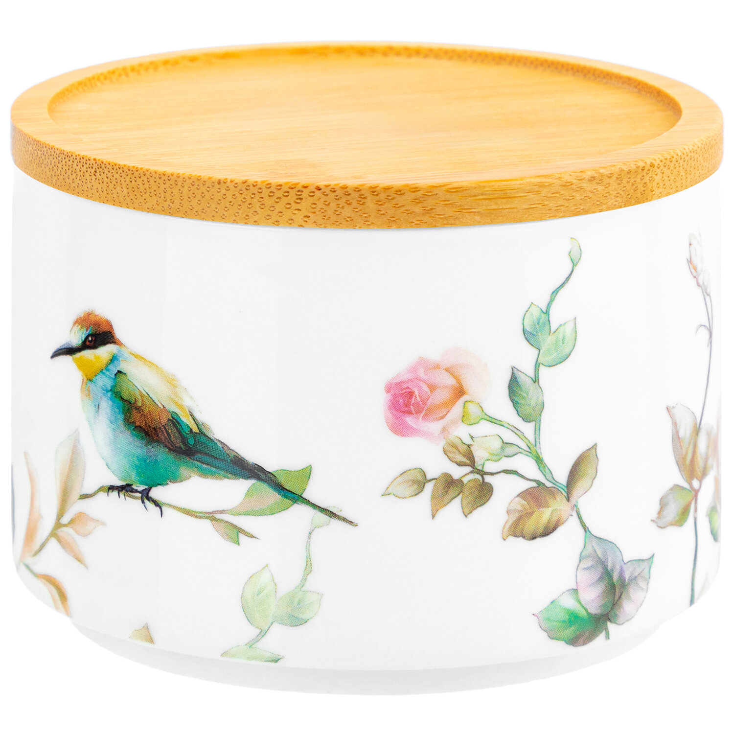 Купить Банка для хранения сыпучих продуктов, специй 250 мл Elan Gallery Певчие птички, с деревянной крышкой-подставкой