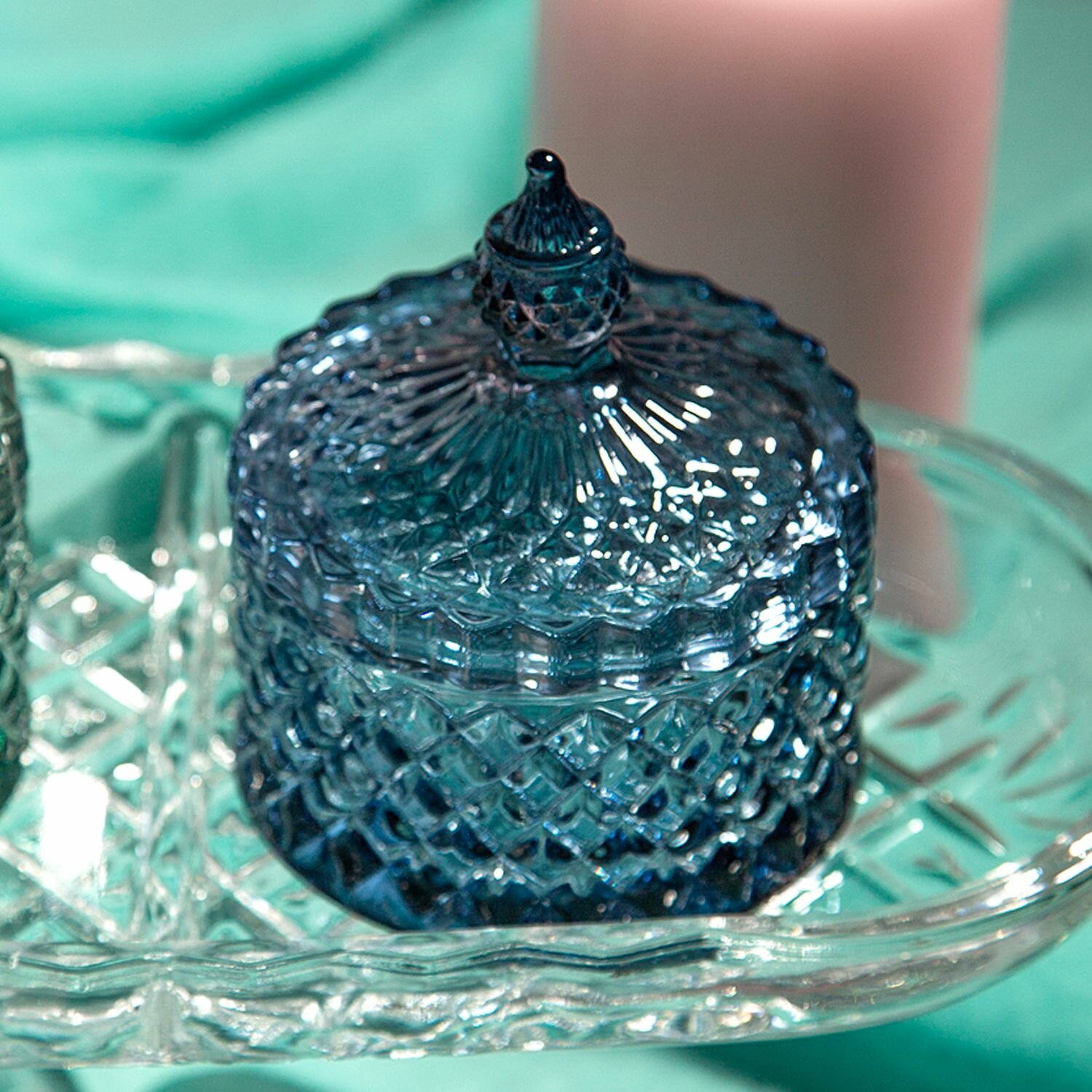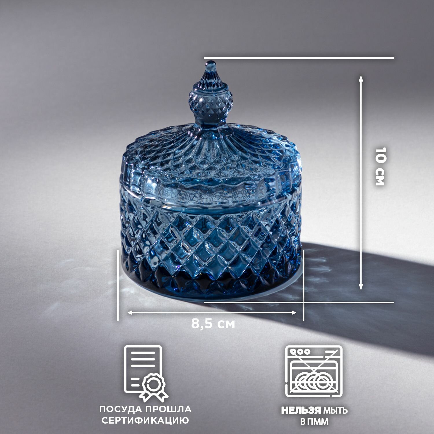 Купить Емкость Lefard из стекла для хранения стеклянная "Diamant Blue" 8,5 х 8,5 х 10 см