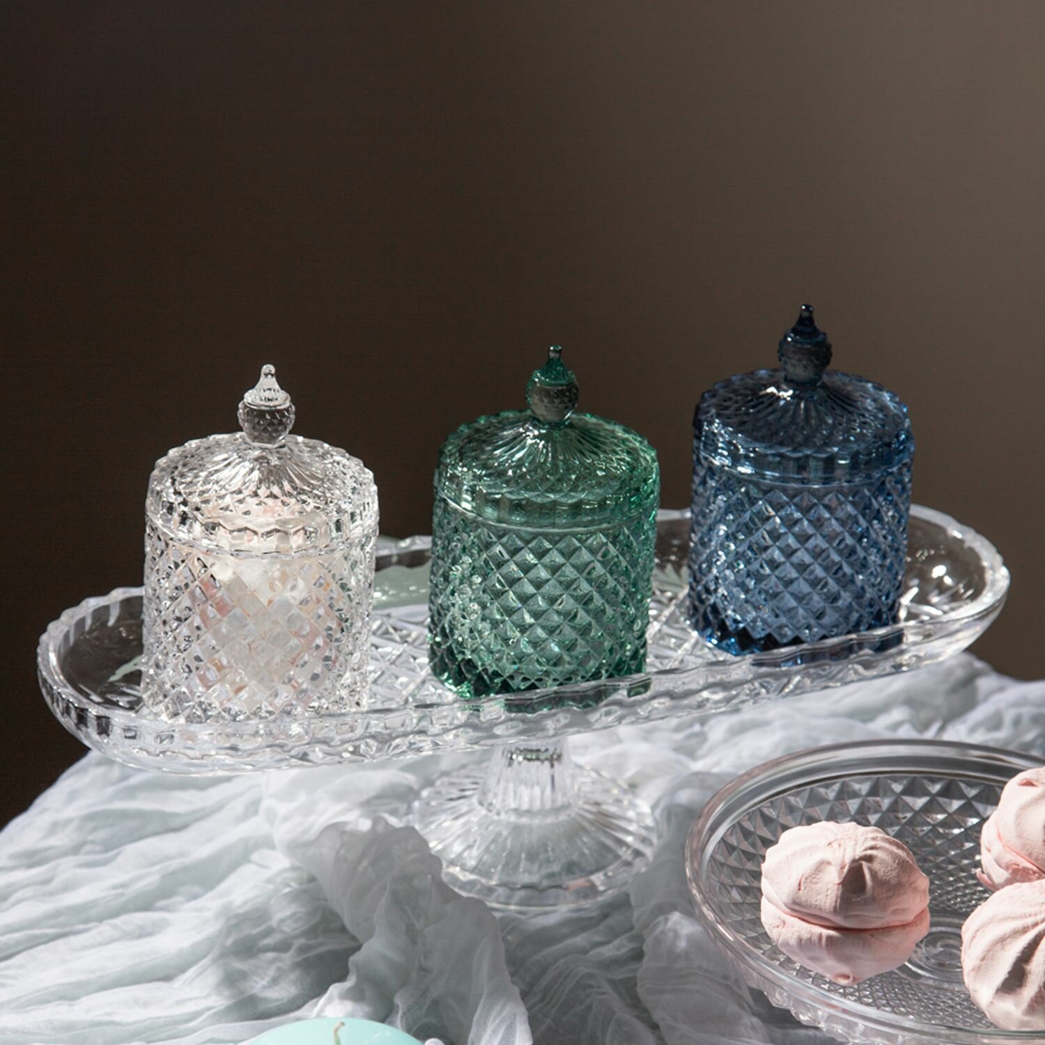 Емкость Lefard "Diamant Blue" из стекла для хранения на ножке 15,7 х 15,7 х 23 см