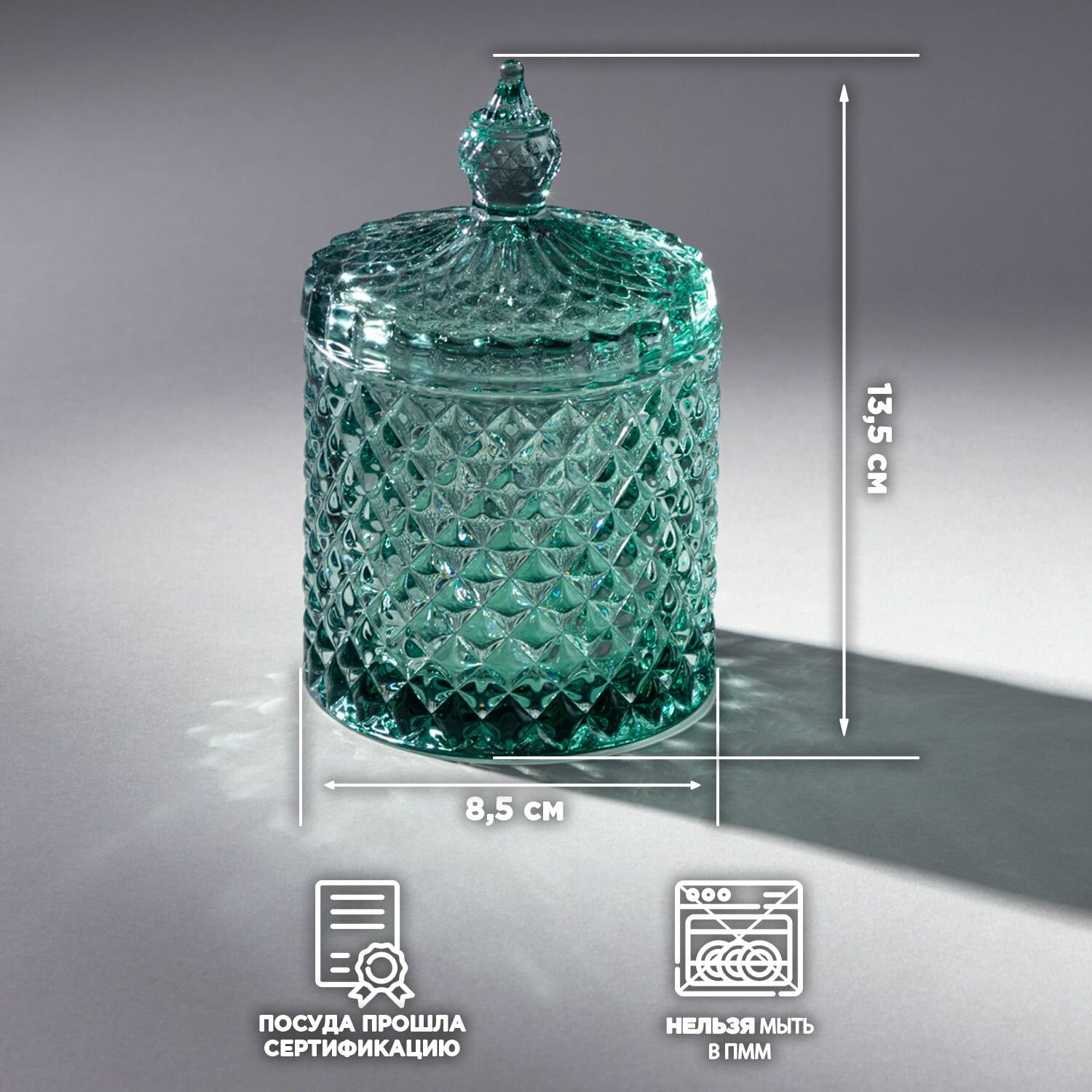 Емкость Lefard "Diamant Mint" из стекла для хранения стеклянная 8,5 х 8,5 х 10 см