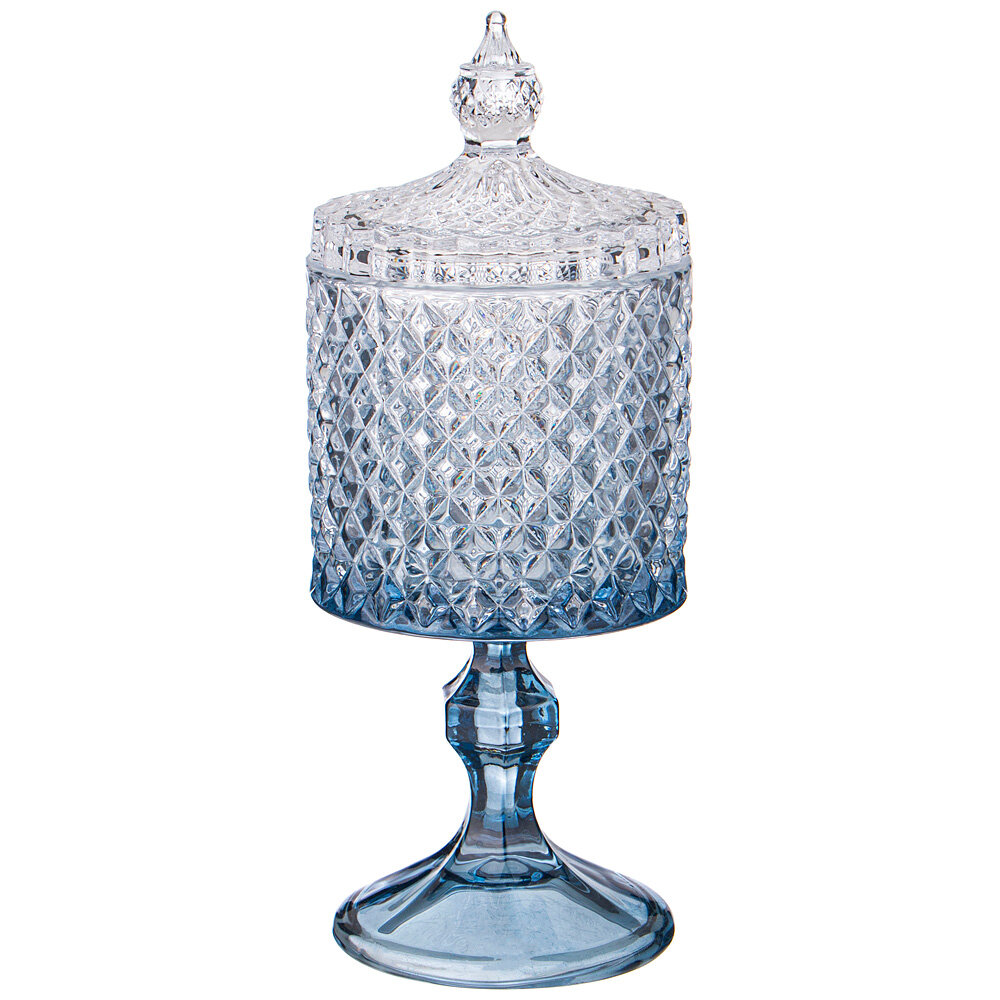 Емкость Lefard "Diamant Blue" из стекла для хранения на ножке 15,7 х 15,7 х 23 см