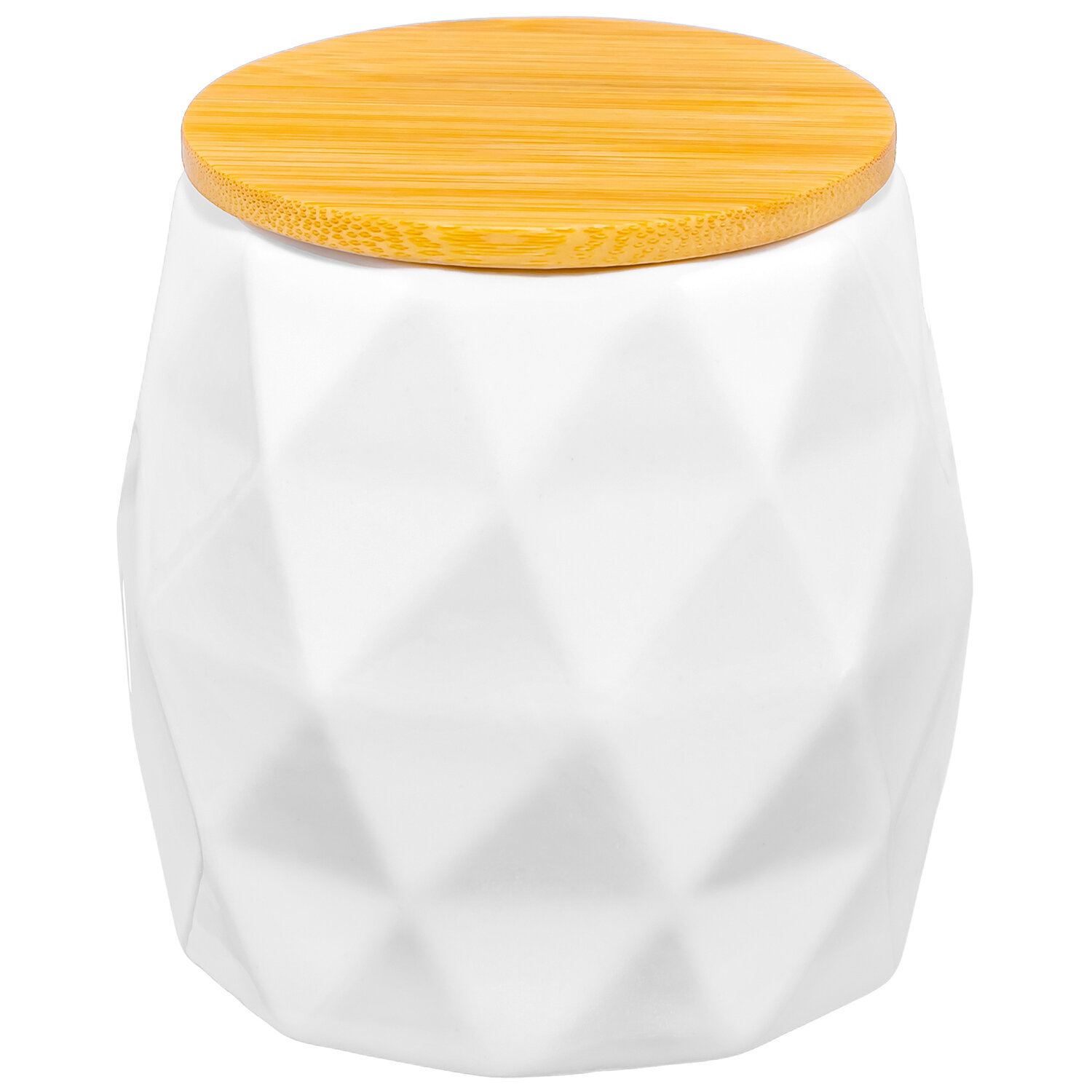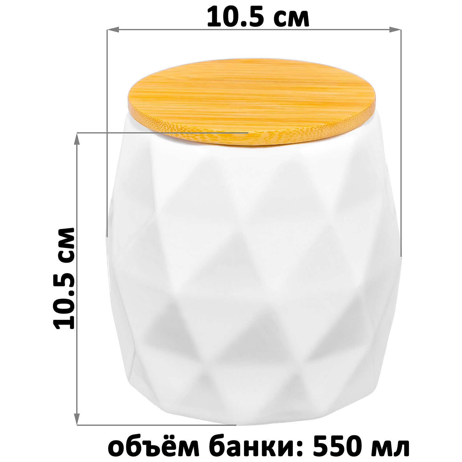 Купить Банка для хранения сыпучих продуктов 550 мл Elan Gallery Белая + бамбуковая крышка с силиконовым уплотнителем