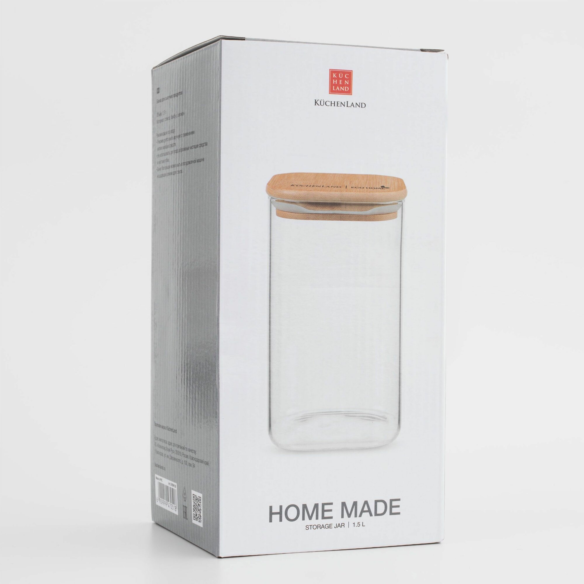 Банка для сыпучих продуктов, 1,3 л, стекло/бамбук, квадратная, Eco home интересное: