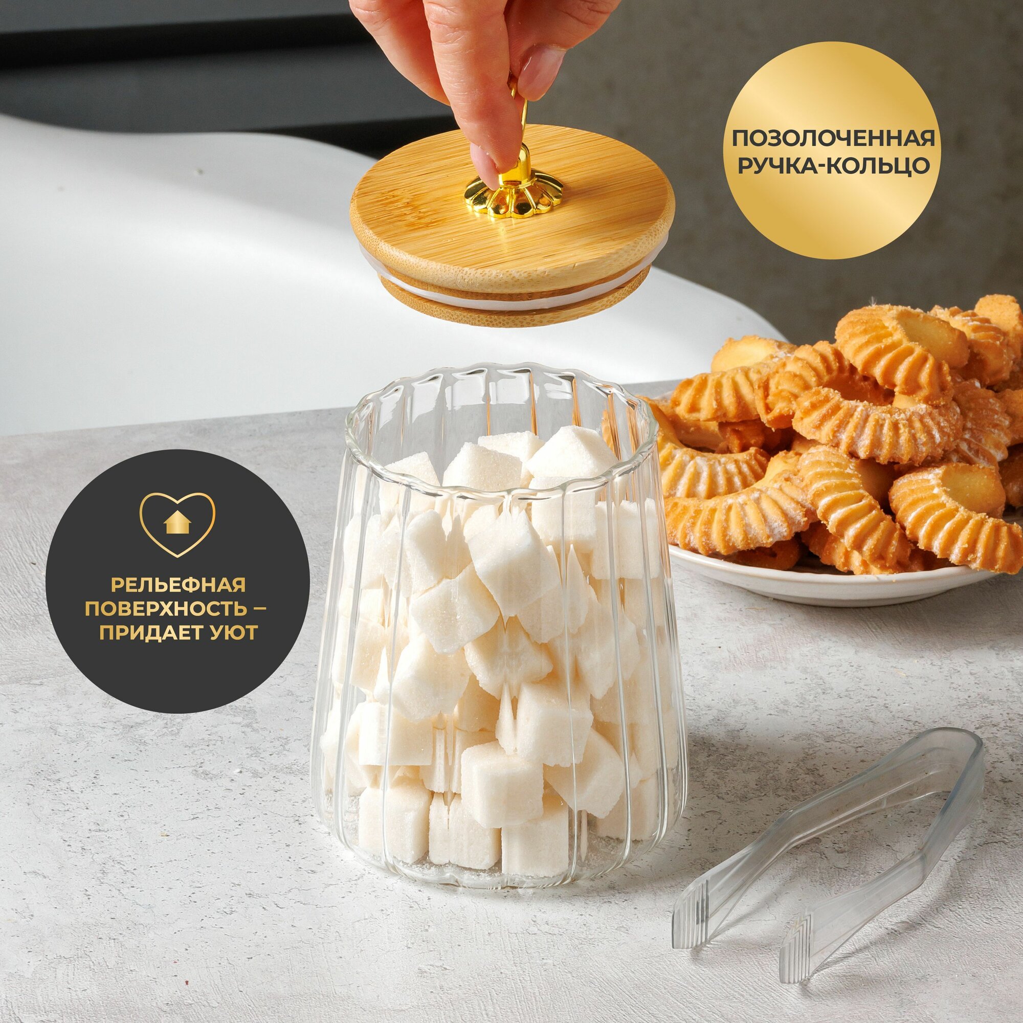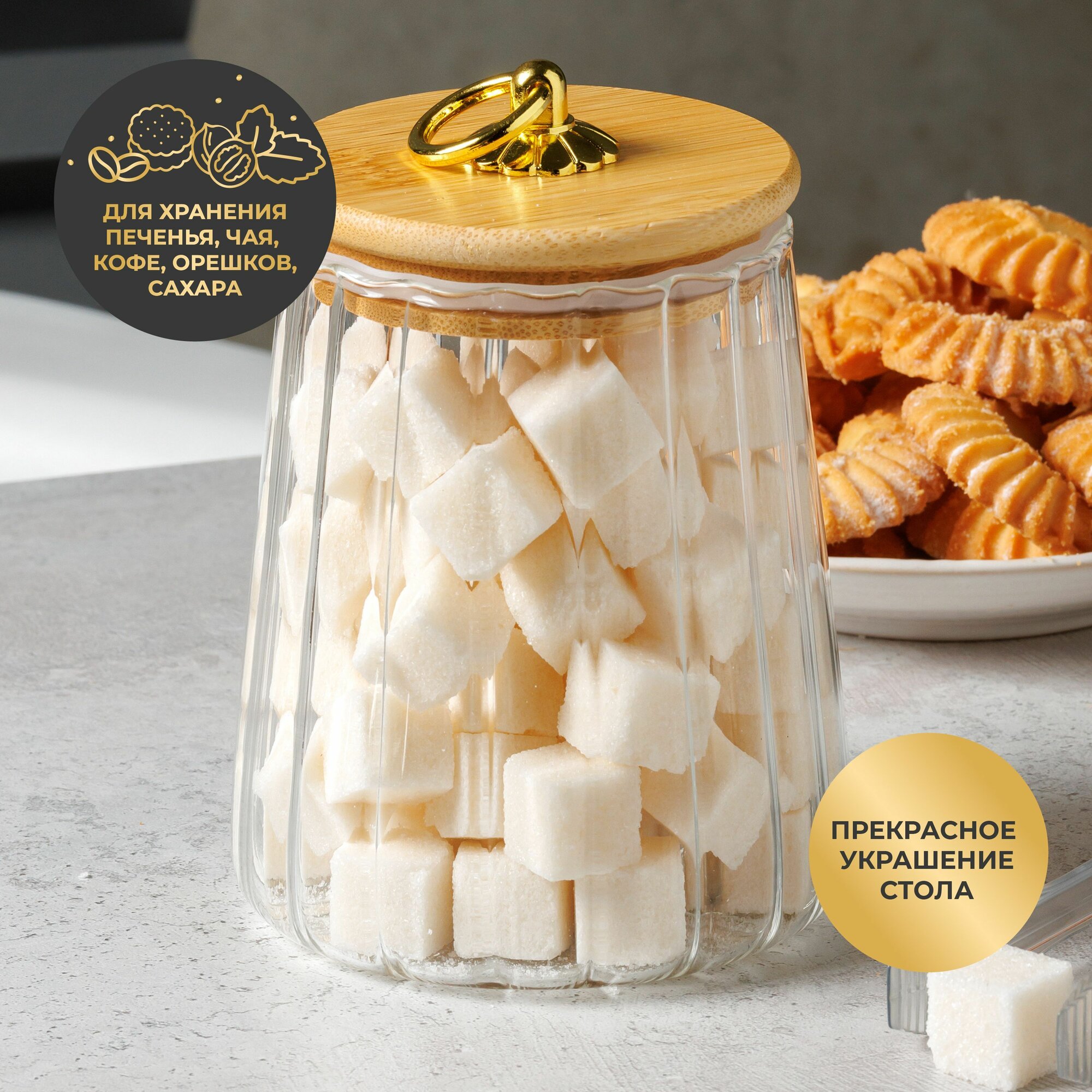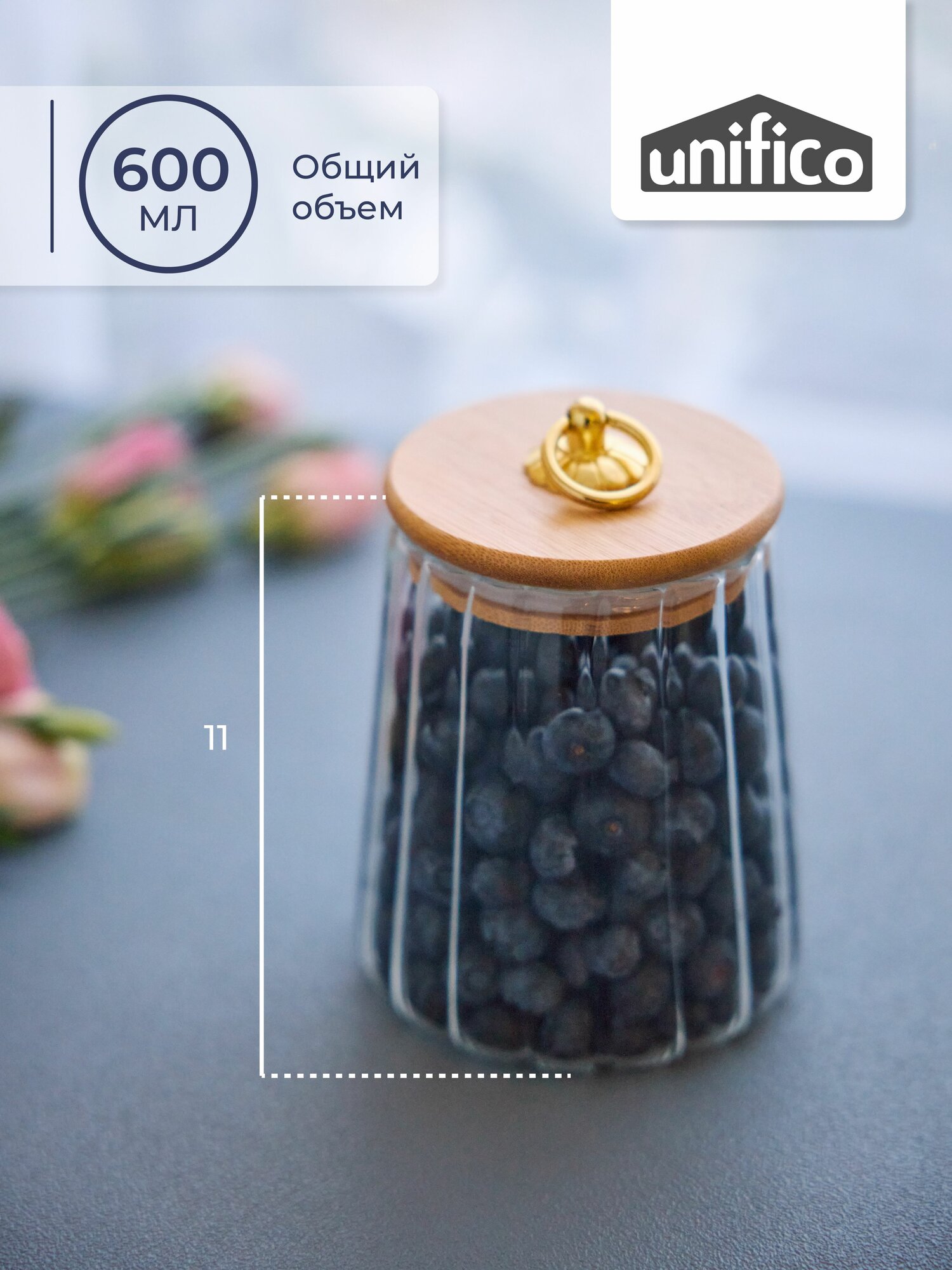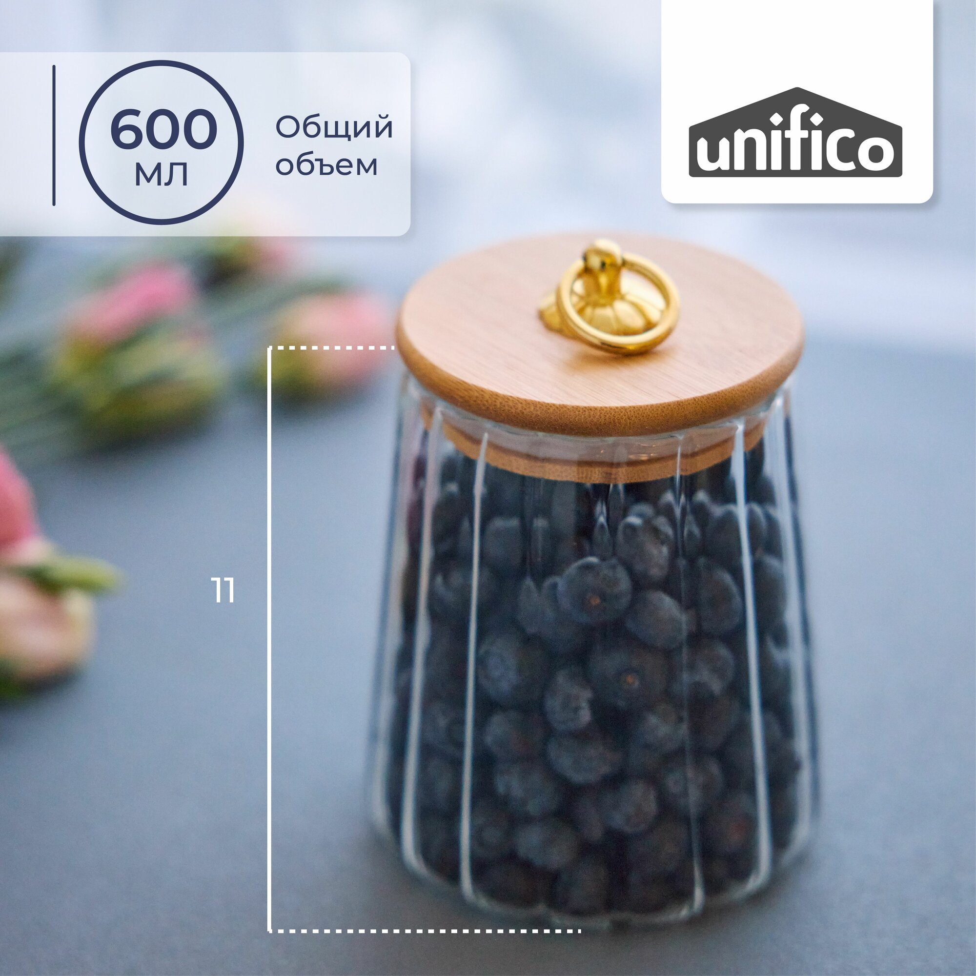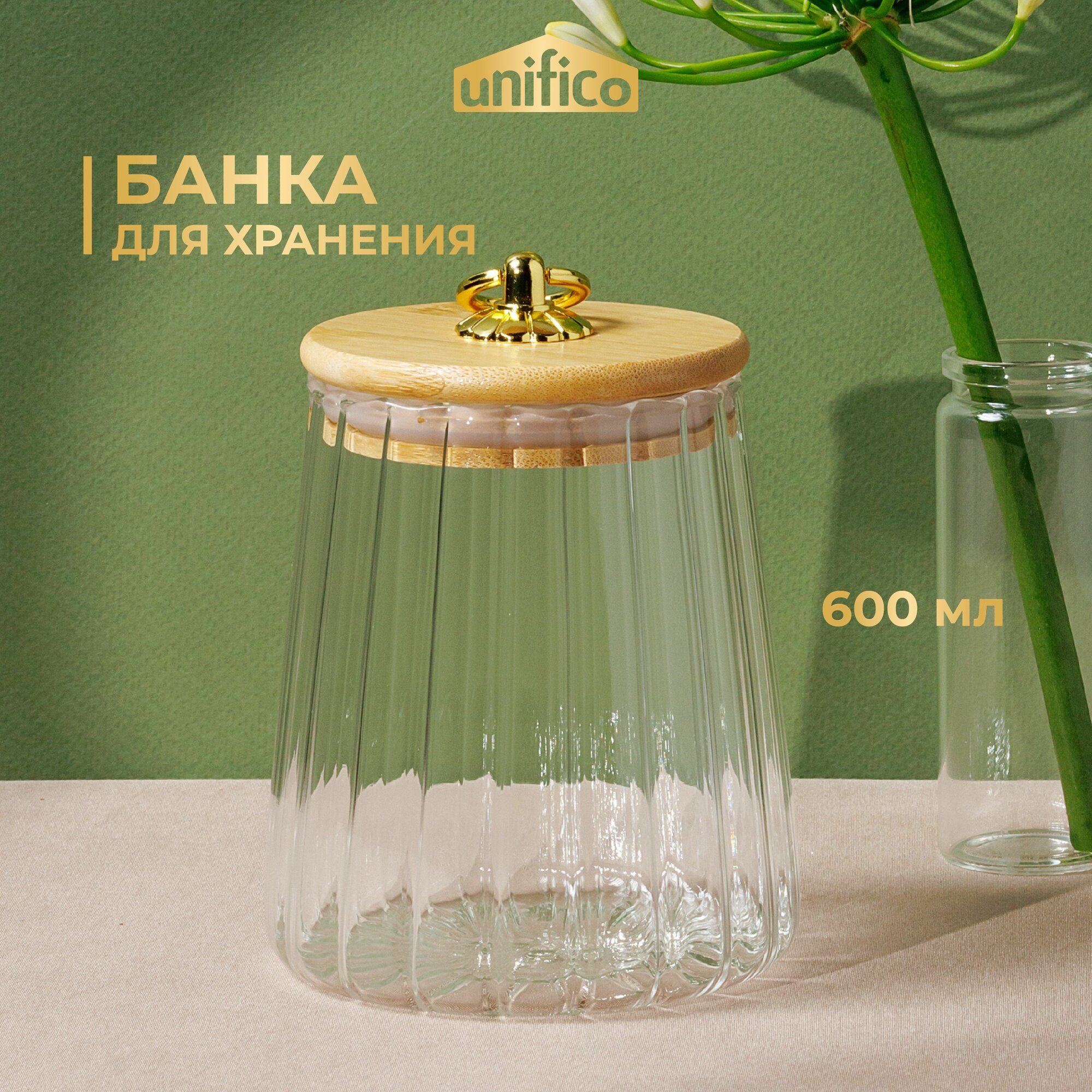 Банка стеклянная для сыпучих продуктов 600 мл. с бамбуковой крышкой UNIFICO Elsa (трапеция) интересное:
