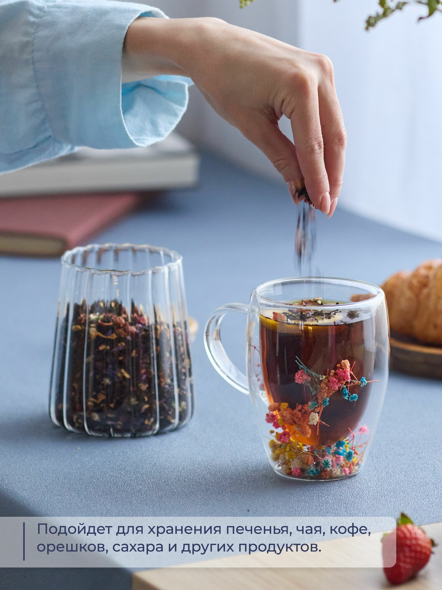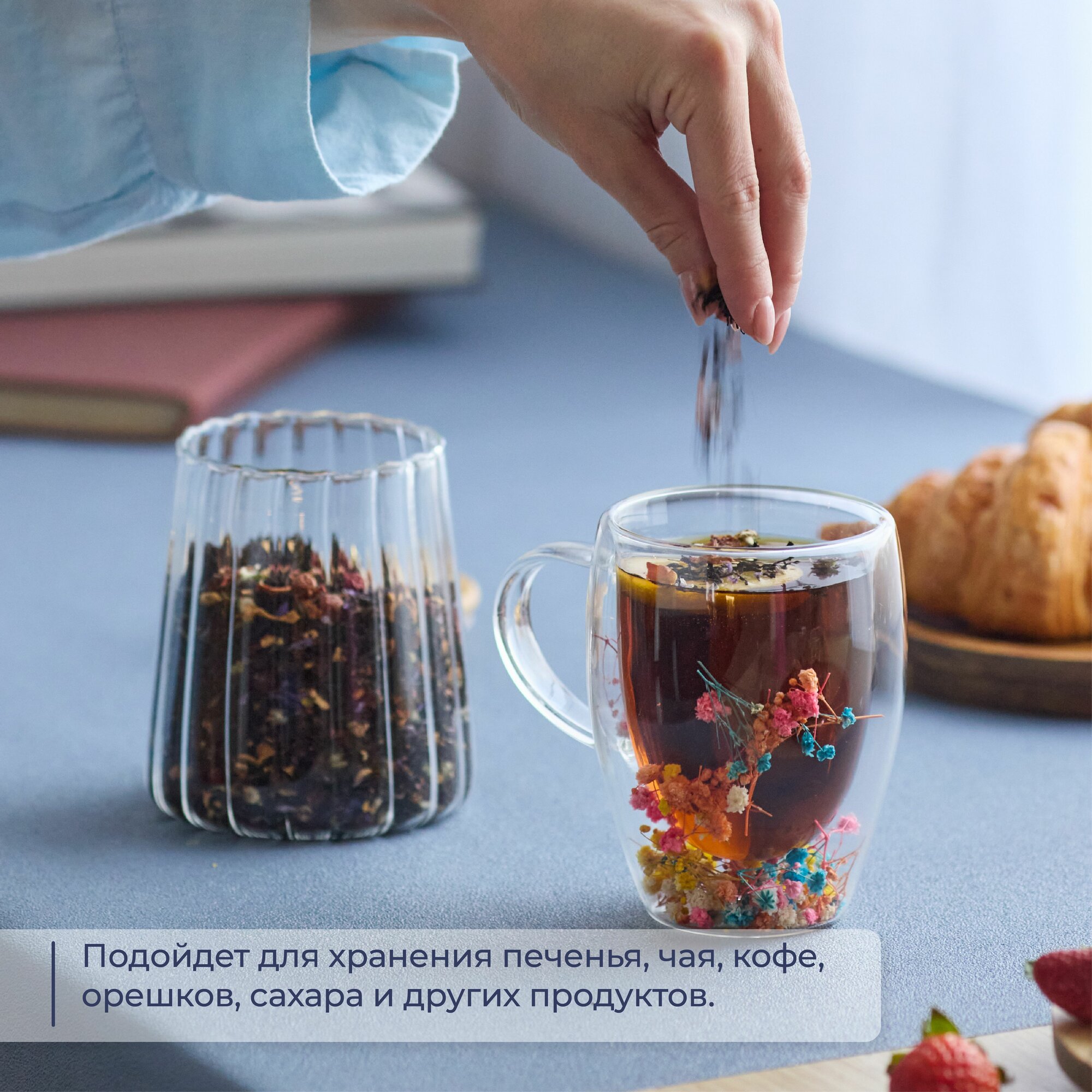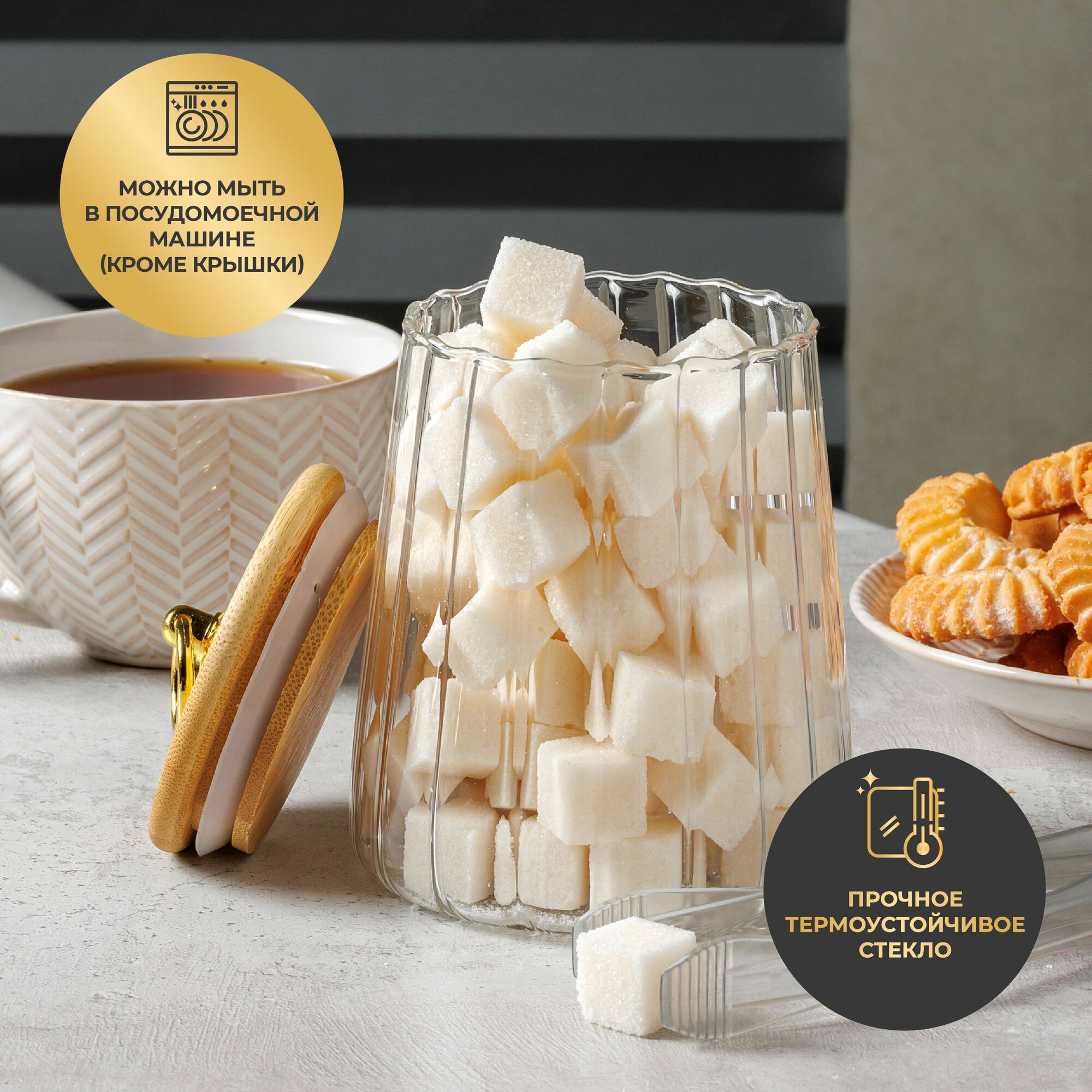 Банка для хранения сыпучих продуктов / соли / специй /чая / кофе 3-х секционная 400 мл 11,5*11,5*20 см "Crystal glass" + стеклянная крышка, стекло